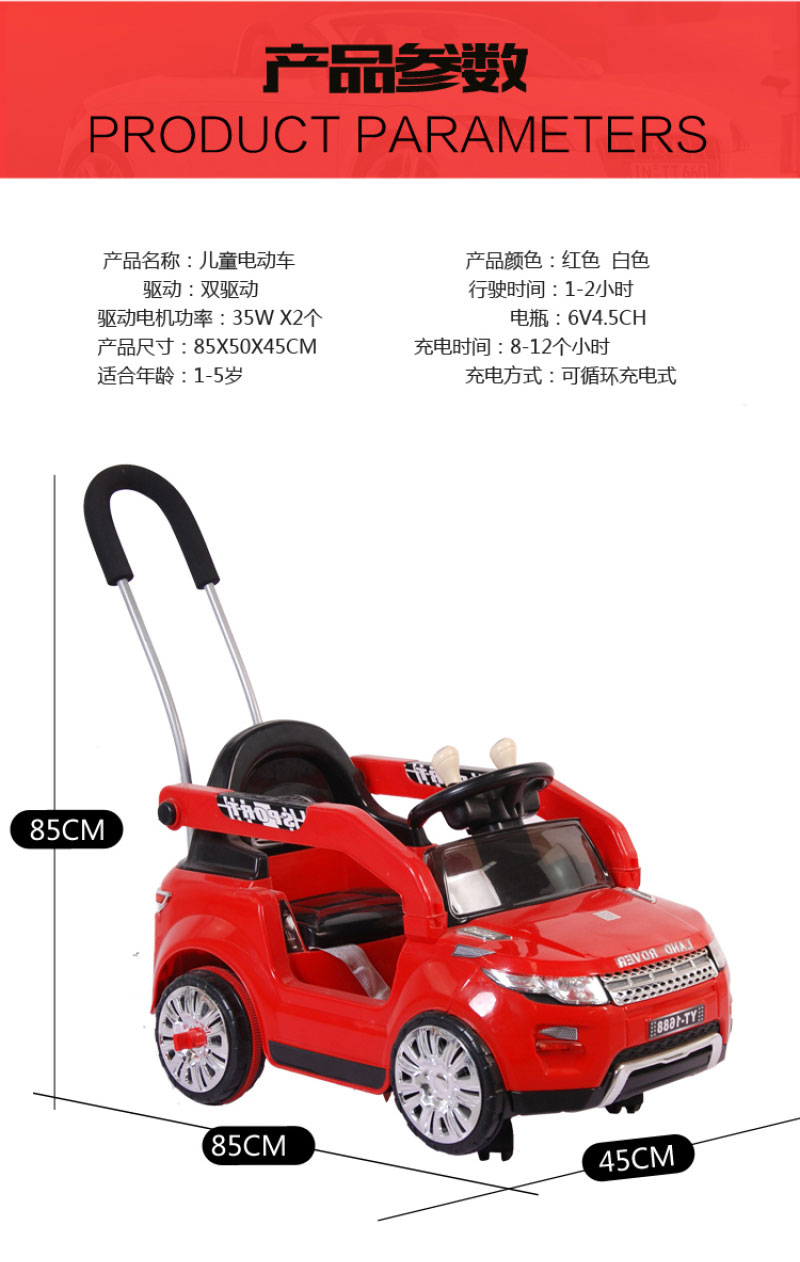 儿童电动车婴幼儿手推车可坐人四轮双驱动孩子电瓶车可充电玩具车