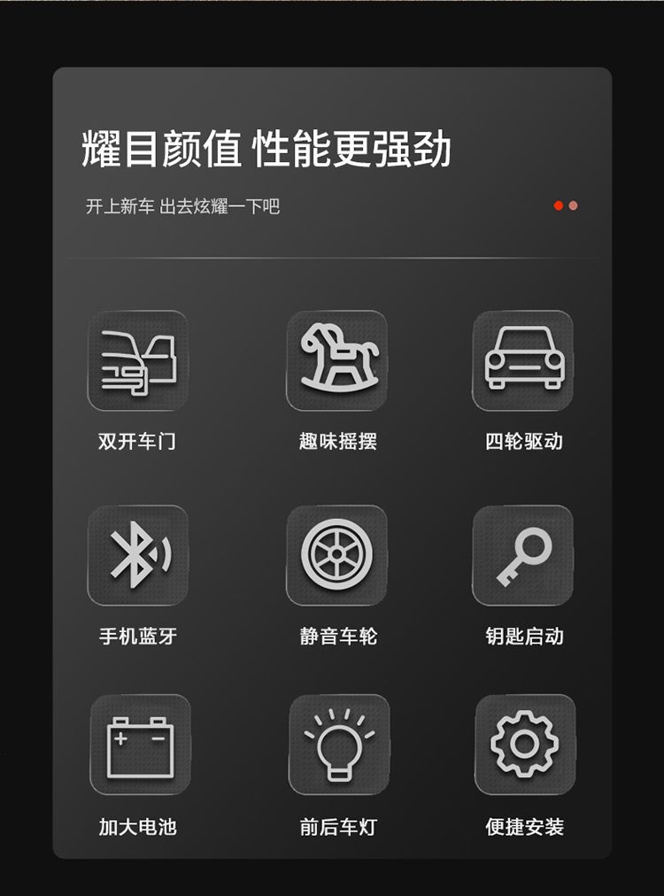 红色,粉色,白色,绿色。烤漆红,烤漆黑,烤漆蓝。大电双驱,皮座