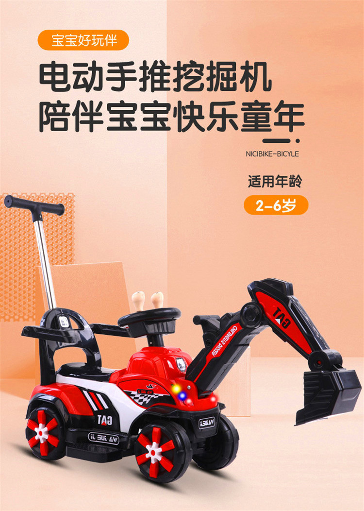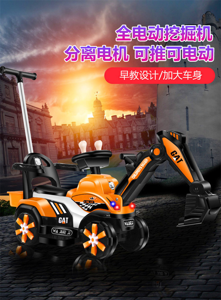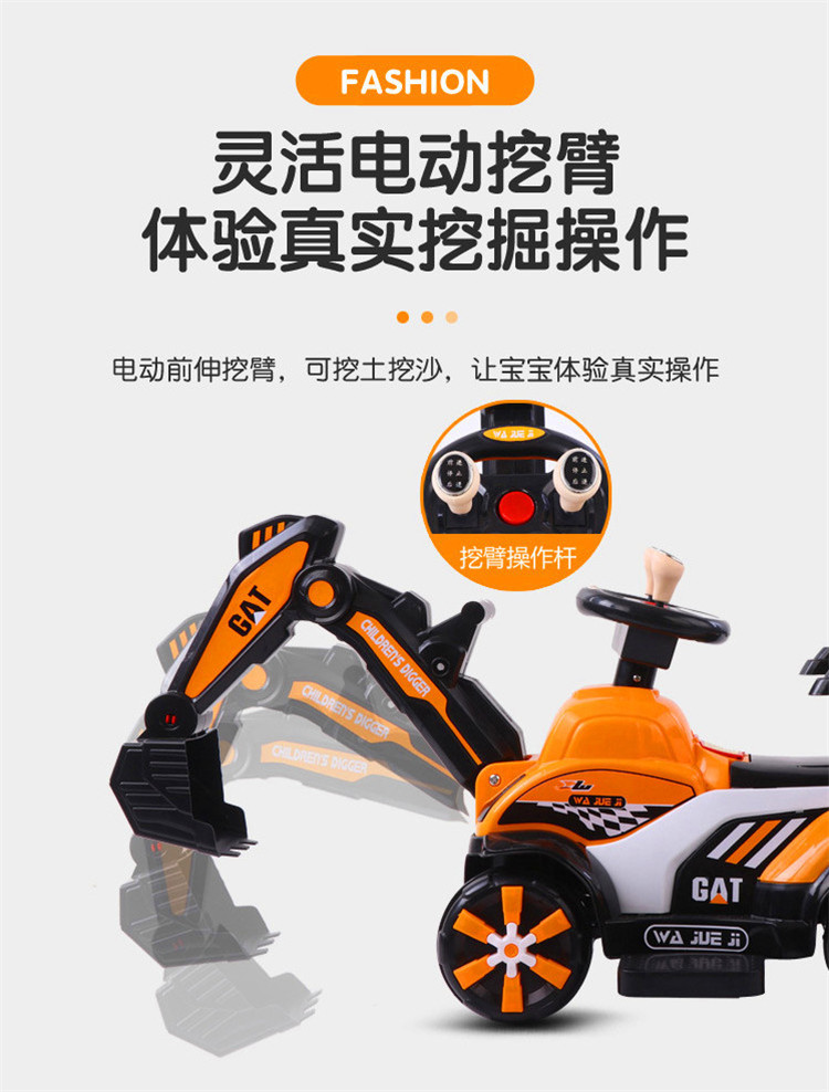 新款儿童挖掘机电动老挖机可坐人 玩具挖土机带灯光音乐