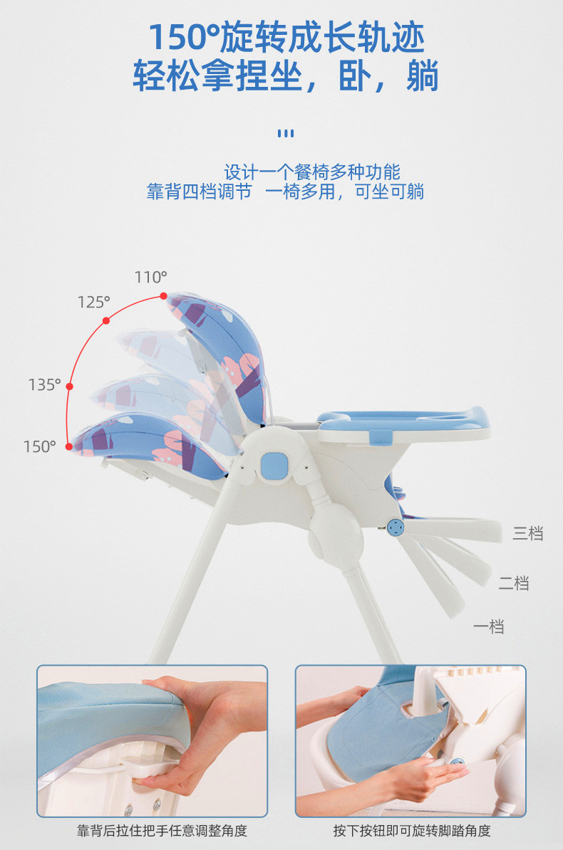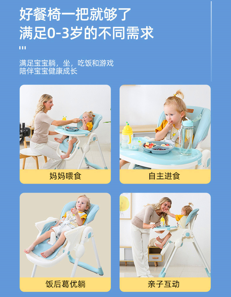 可坐可躺儿童成长吃饭椅 婴幼儿多功能可折叠轻便推宝宝餐椅