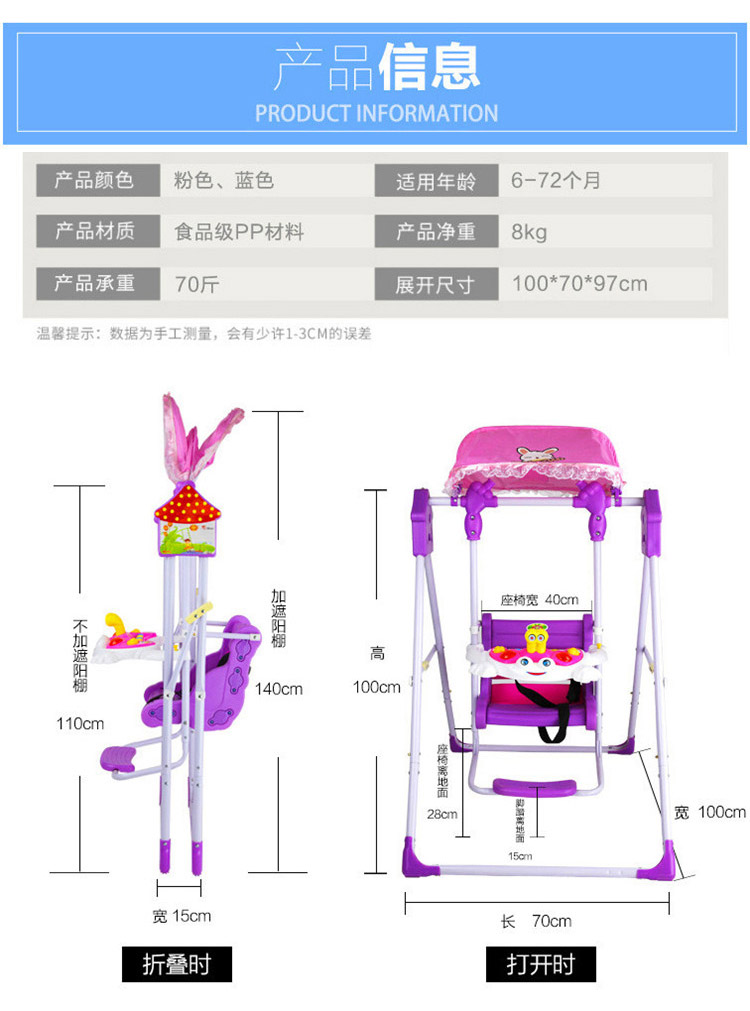 儿童秋千折叠家用小孩吊椅宝宝餐桌摇椅婴儿摇篮幼儿室内户外玩具