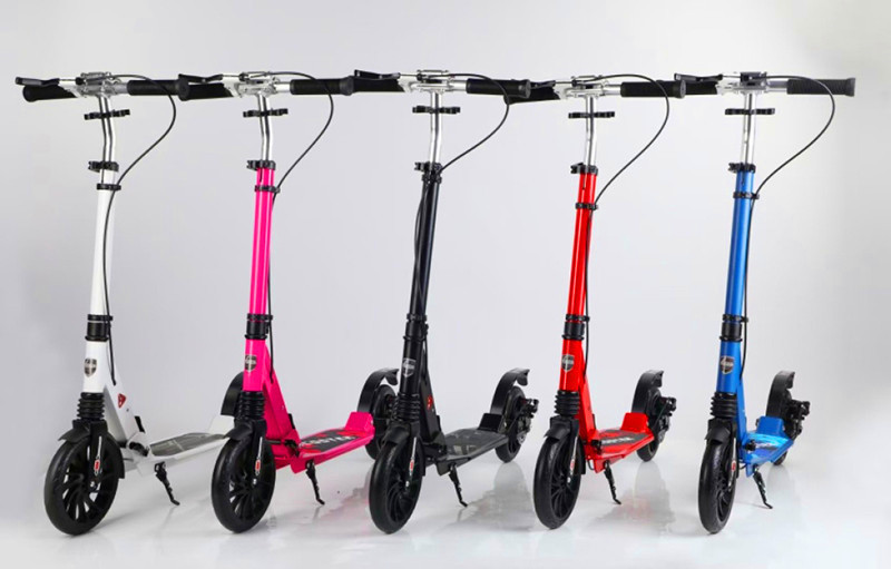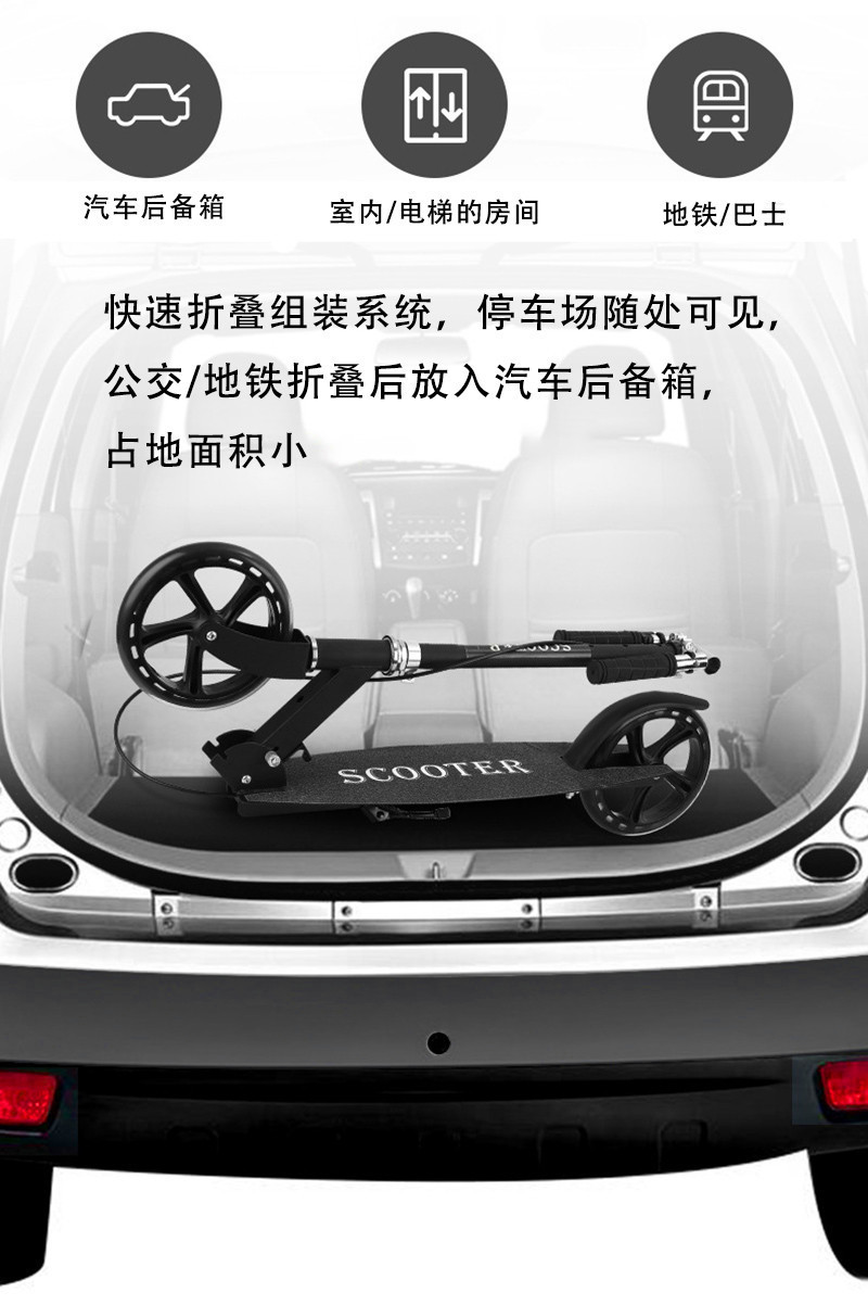 压扣手把带手刹碟刹减震滑板车 轮子高度可调节 成人铝合金滑板车