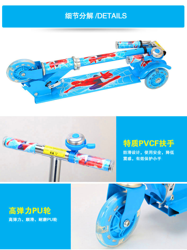 儿童三轮车闪光灯 可折叠踏板车轮滑车玩具童车 儿童滑板车
