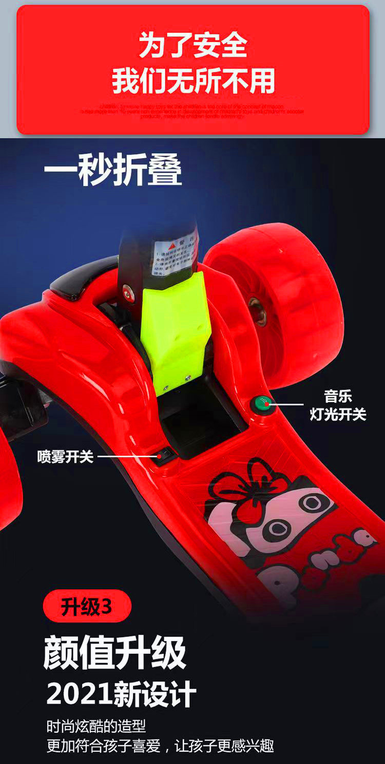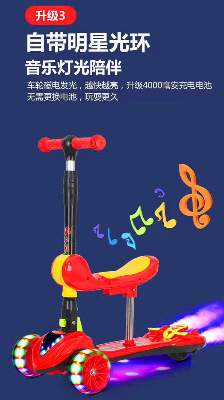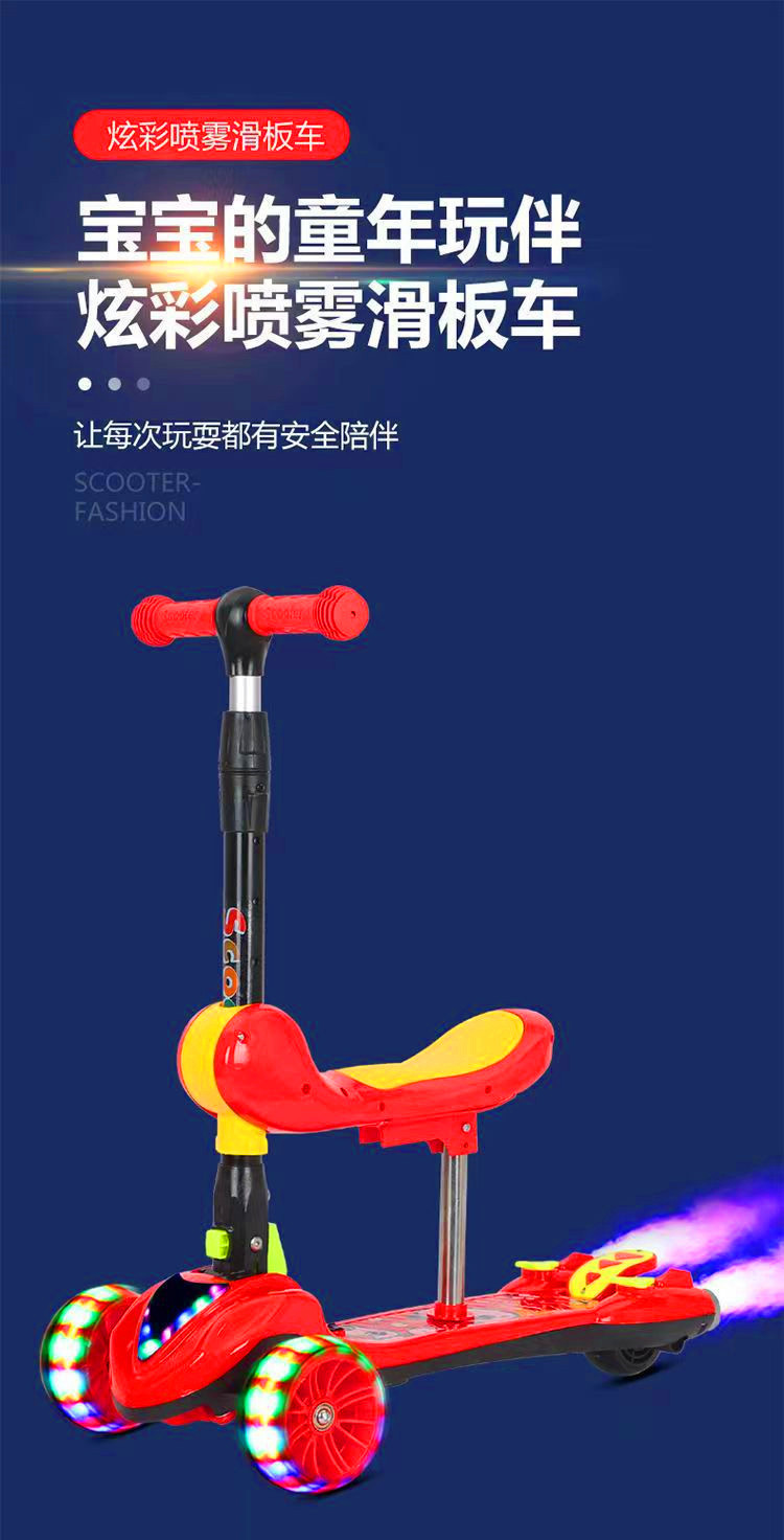新款小孩溜溜车 1-6岁宝宝单脚男女踏板滑滑车带喷雾 儿童滑板车