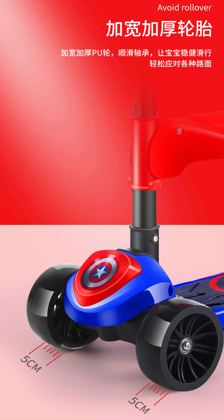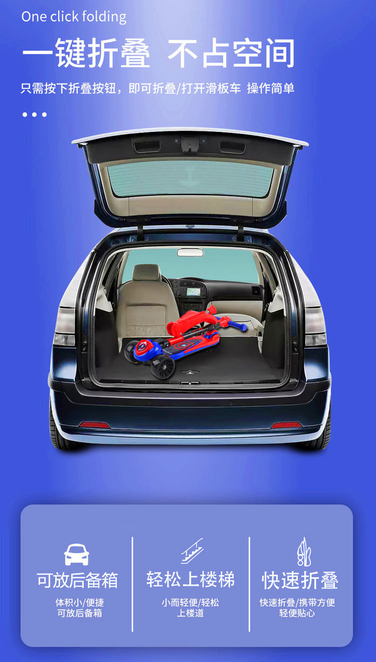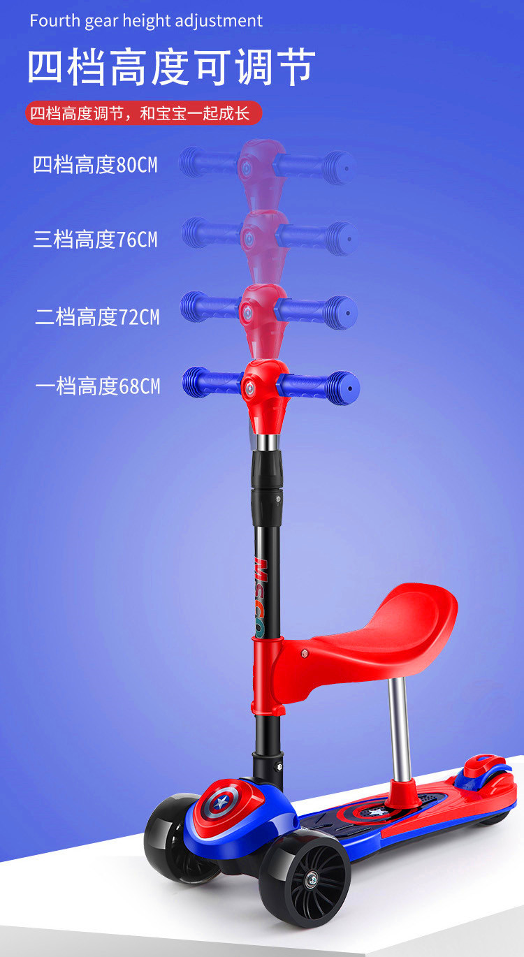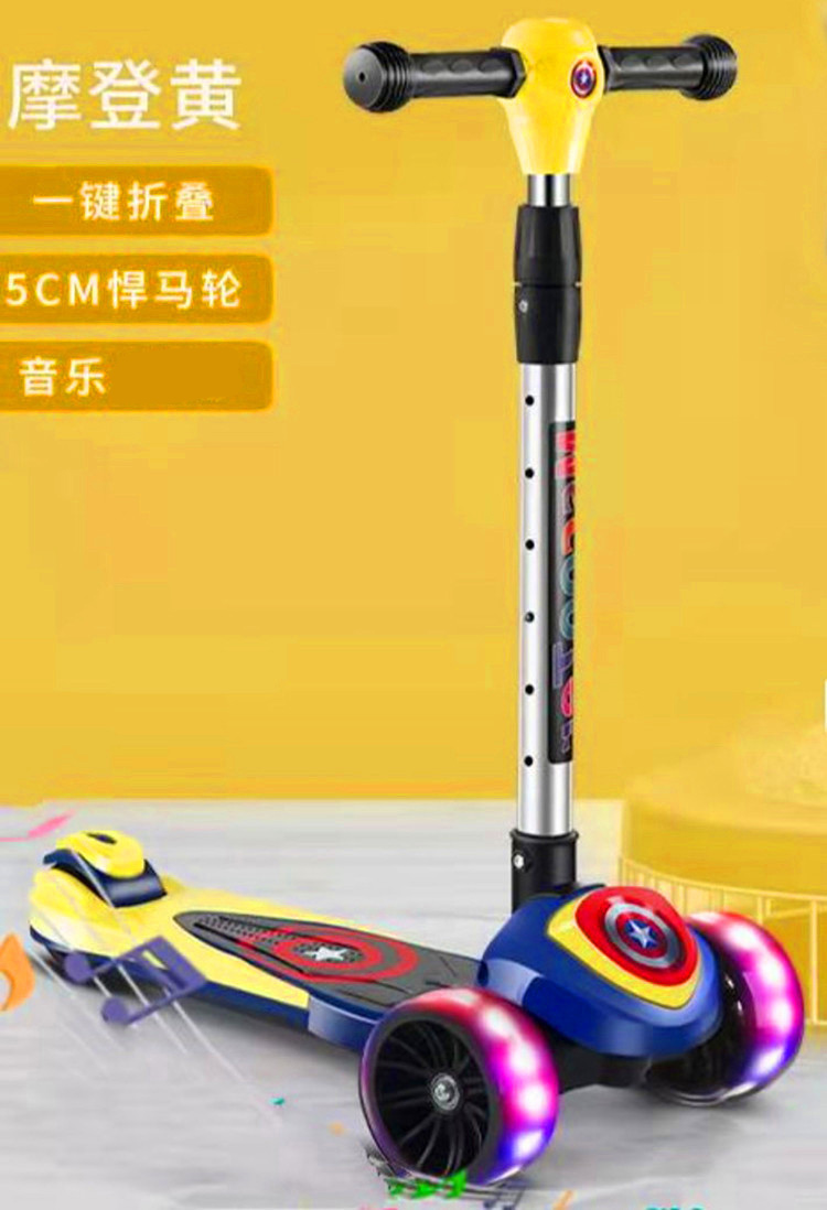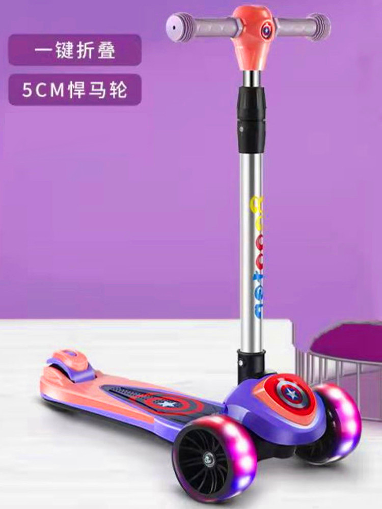 三轮踏板车可折叠 闪光轮溜溜车大童可坐可骑单脚 米高儿童滑板车