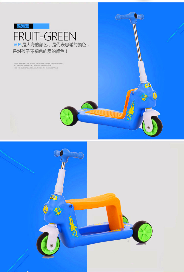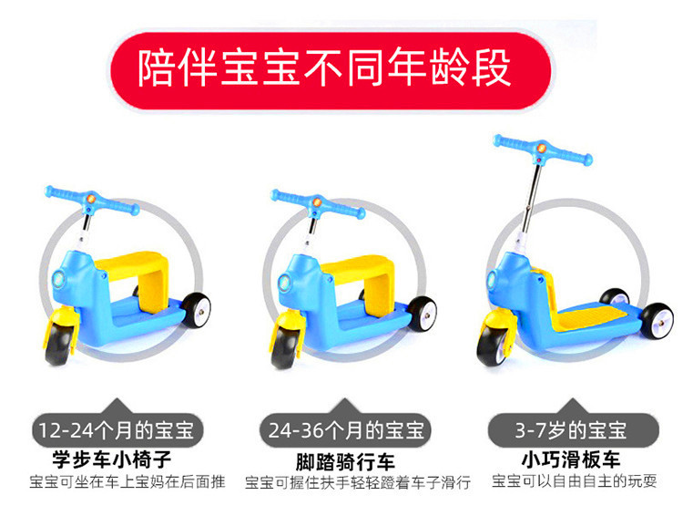 二合一功能多平衡童车 变形滑板车 儿童可骑坐三轮滑行学步车