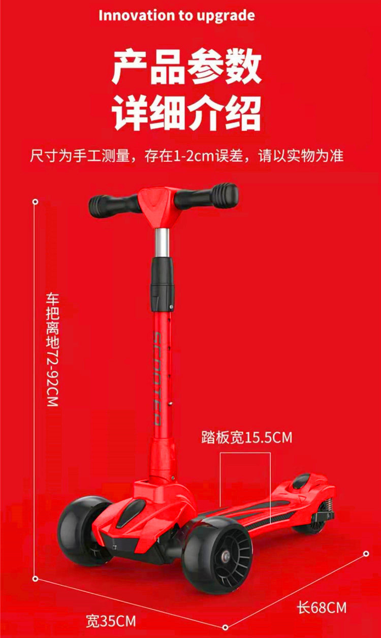 2-15岁可折叠三轮滑行踏板车 带音乐可调儿童滑板车