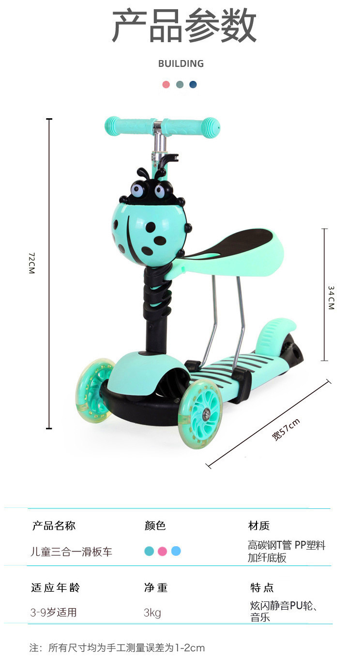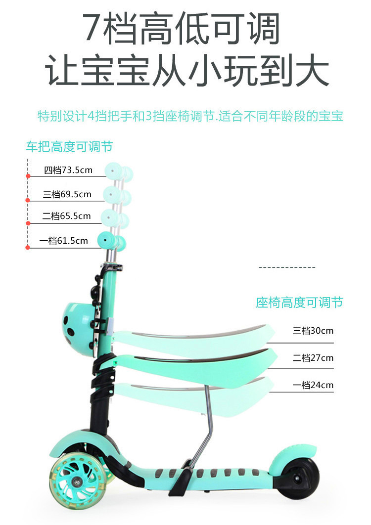 可坐儿童三轮踏板车 儿童滑行车学步车 三合一儿童滑板车