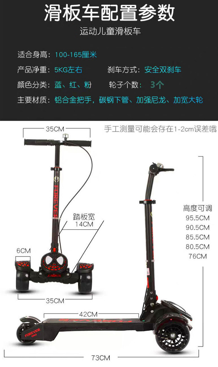 儿童4-8-12-18岁中大童男女孩滑滑踏板音乐灯光溜溜车大号滑板车