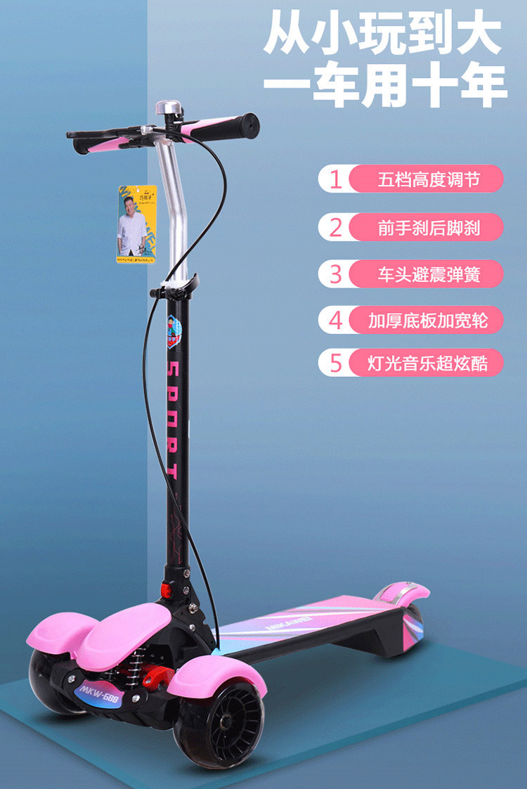 儿童滑板车大童6-8-12岁小孩单脚滑滑车折叠可发光滑滑车青少年