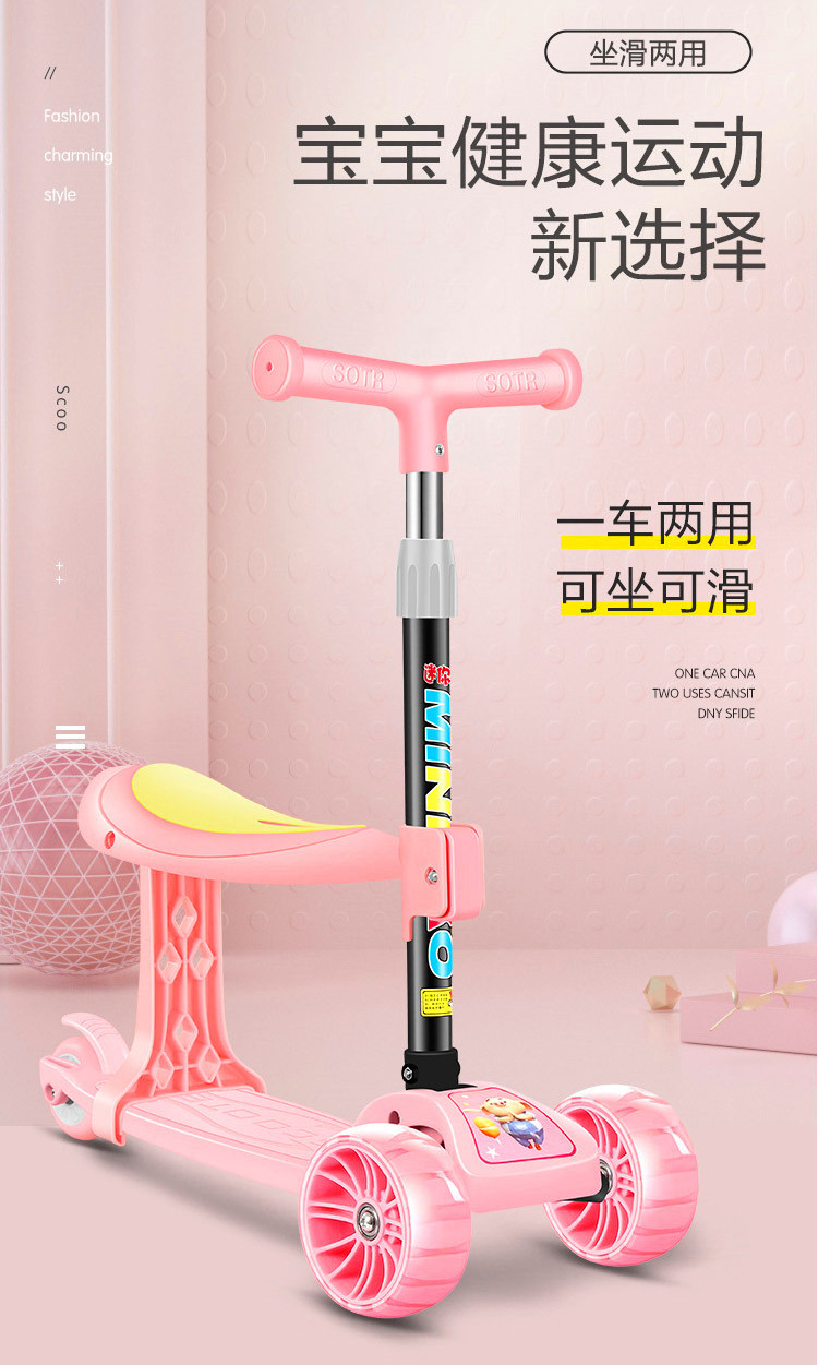 儿童滑板车2-3-6-8-12岁小孩三合一溜溜车可坐单脚宝宝踏板滑滑车
