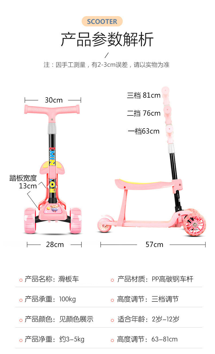 裸车颜色随机发+无保修。(粉蓝):折叠3cm,折叠5cm,折叠3cm+车座,折叠5cm+车座