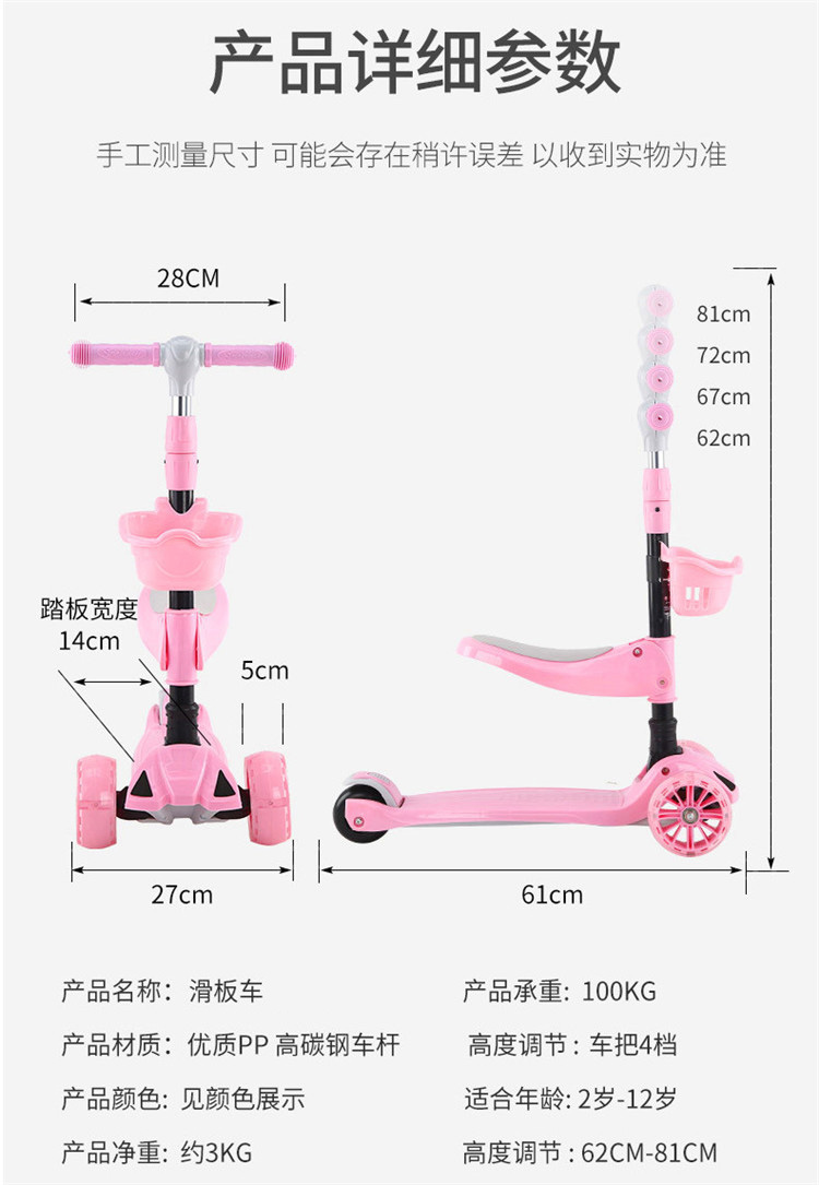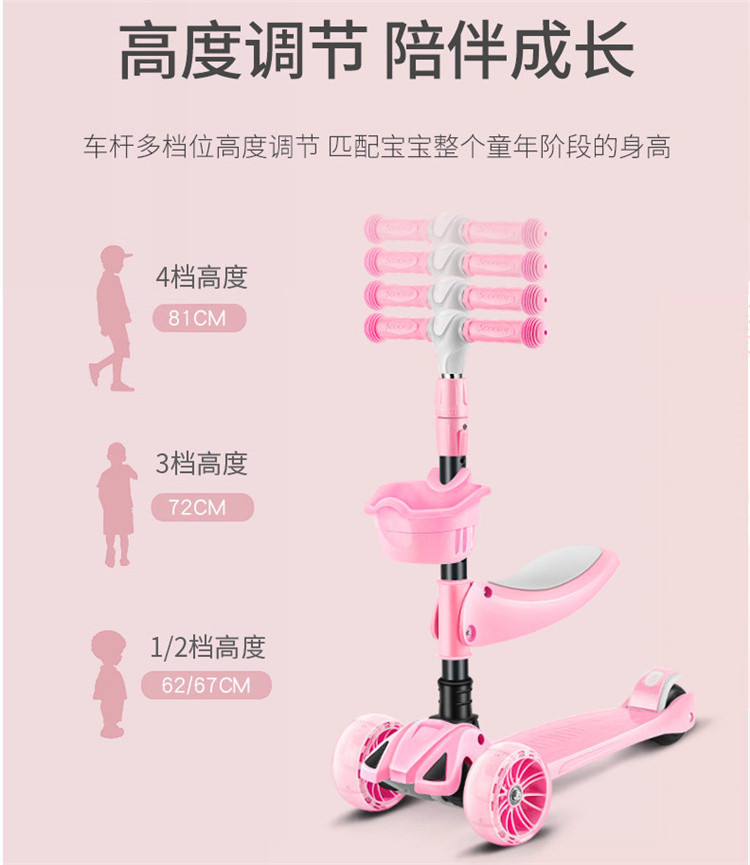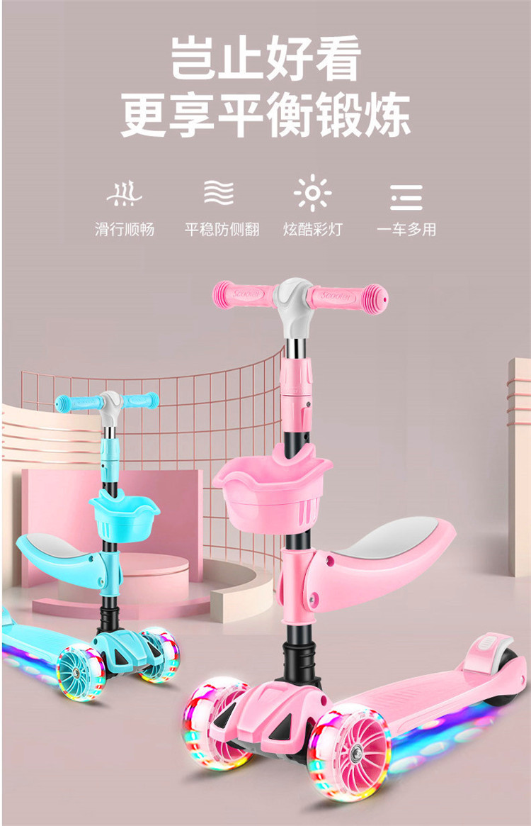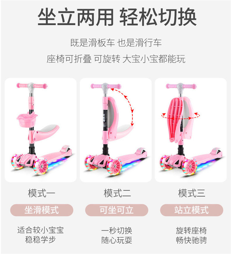 新款滑板车儿童滑滑车2-12岁小孩三合一闪光轮踏板车座椅滑滑车