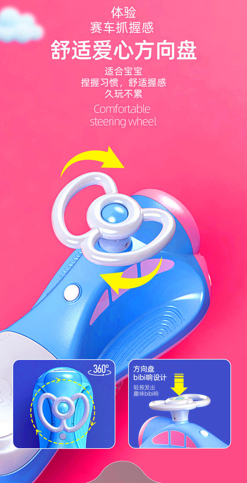 音乐宝宝溜溜车3-6岁滑步静音轮摇摆妞妞滑行车万向轮儿童扭扭车