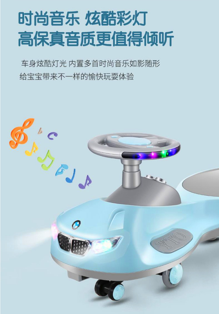 乘坐汽车儿童滑动式童车与音乐和灯光工程滑行车儿童滑行车
