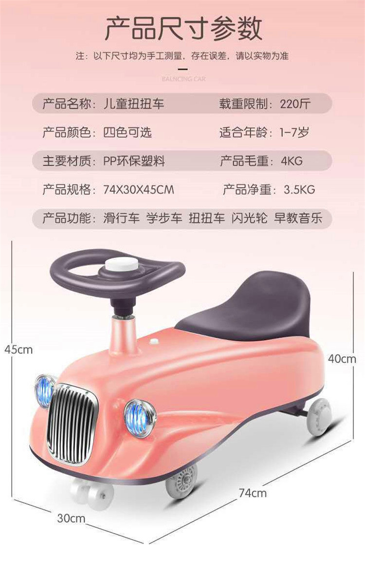 新款儿童扭扭车防侧摔1-3岁男孩儿童摇摆车3-6岁宝宝溜溜车滑行车