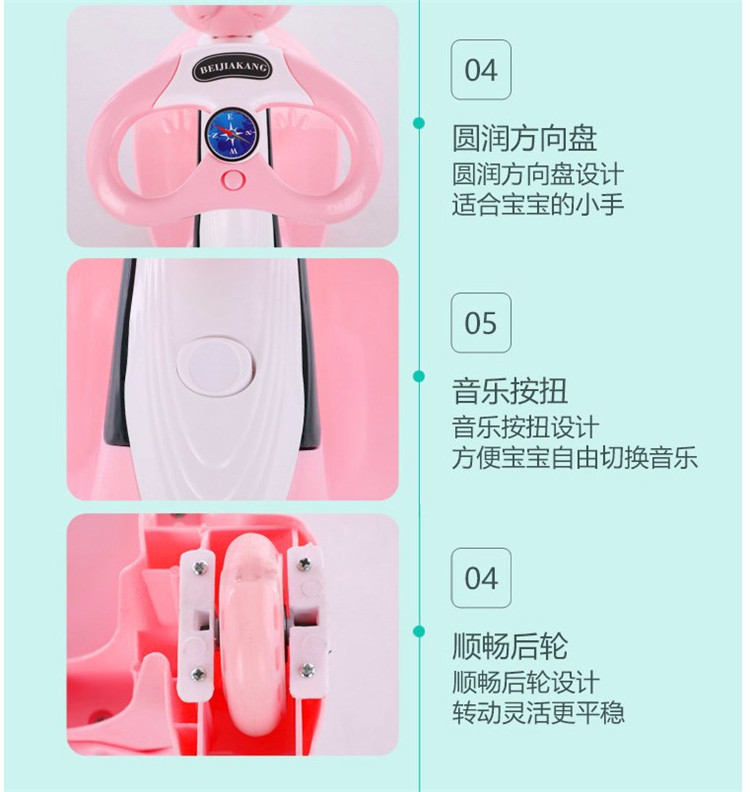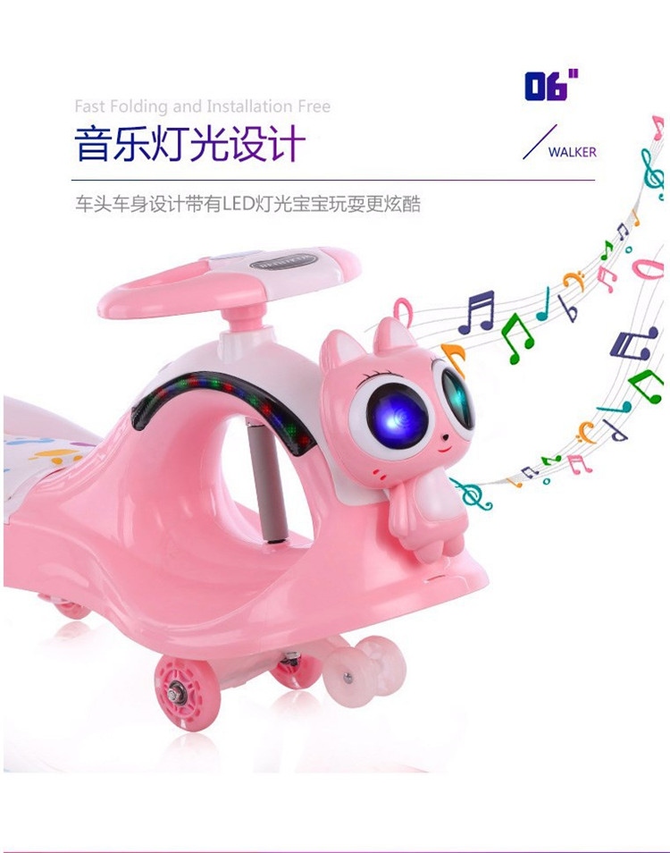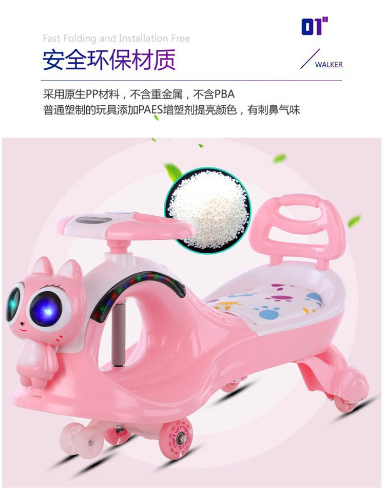 儿童摇摆车 时尚音乐炫彩灯光溜溜车 环保材质扭扭车