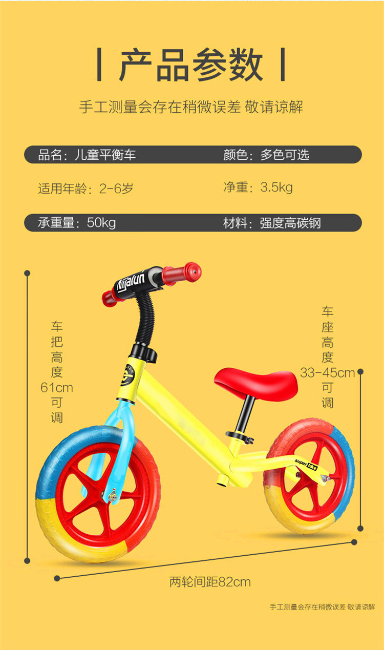 新款礼品儿童平衡车 12寸儿童无脚踏滑步自行车小孩滑行车童车
