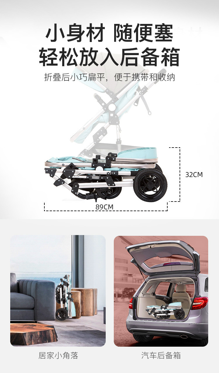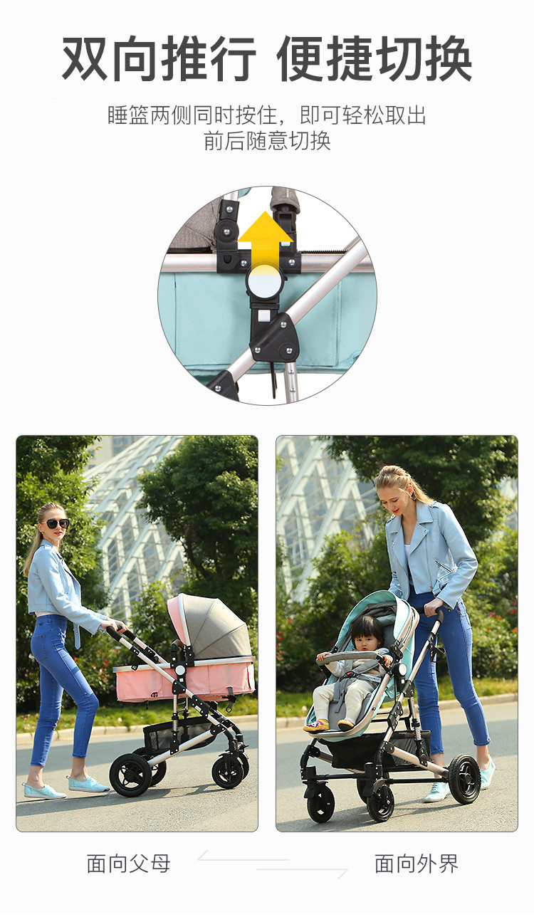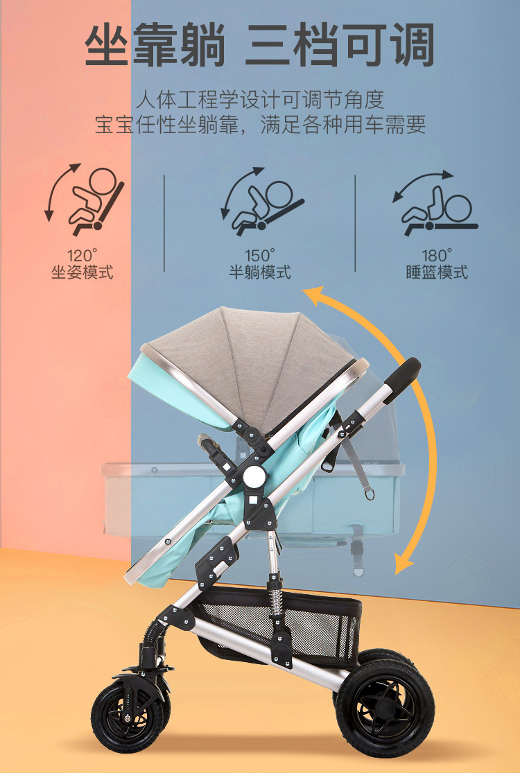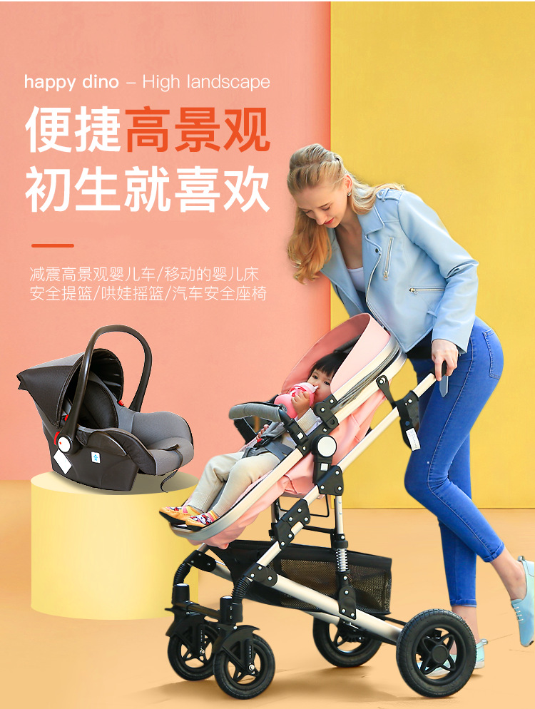 婴儿推车可坐可躺折叠避震提篮三合一双向新生儿宝宝高景观婴儿车
