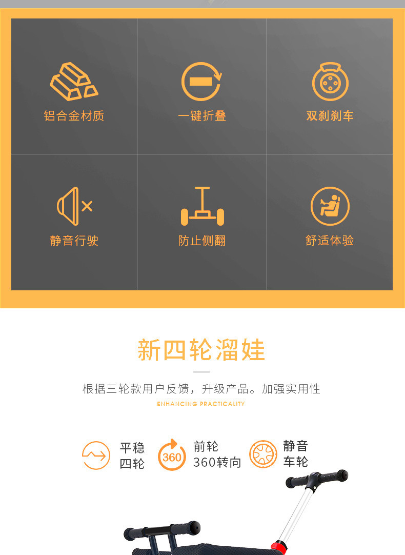 高档新款儿童滑行车四轮平衡车1-3岁男女宝宝滑步车溜溜车带灯光