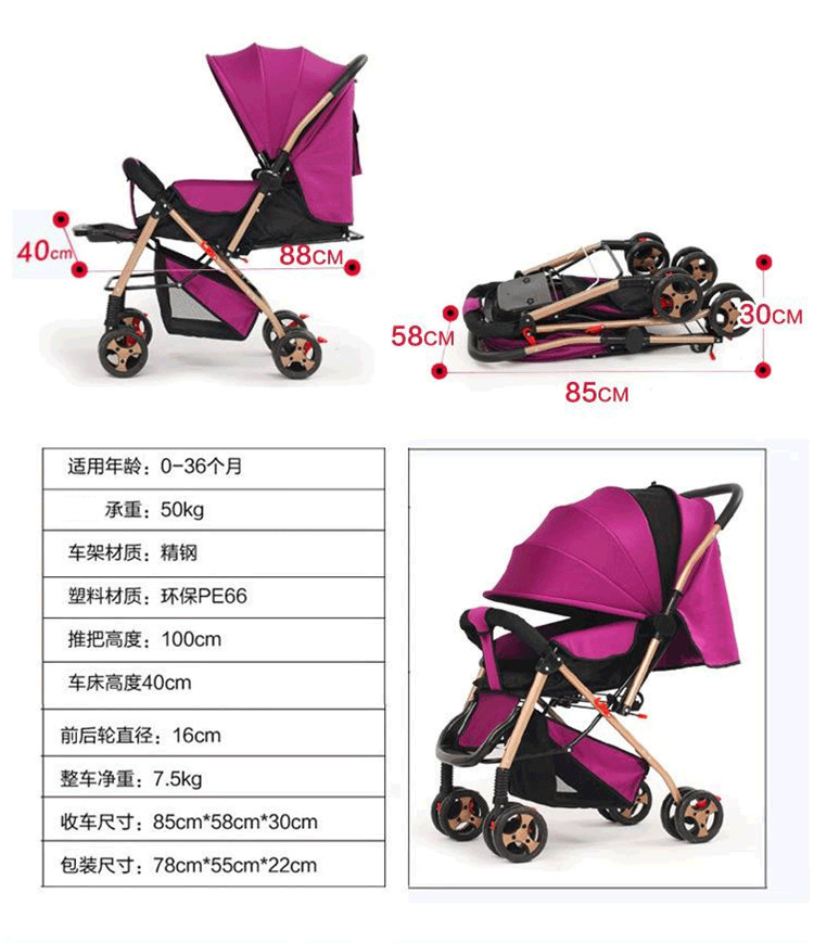 婴儿手推车便携超轻双向铝合金高景观折叠可坐躺可携带上飞机火车