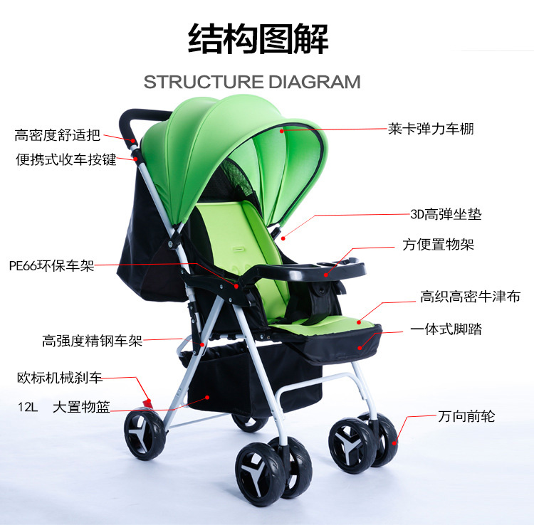 婴儿手推车 轻便携可躺可坐 折叠四轮避震儿童婴儿推车