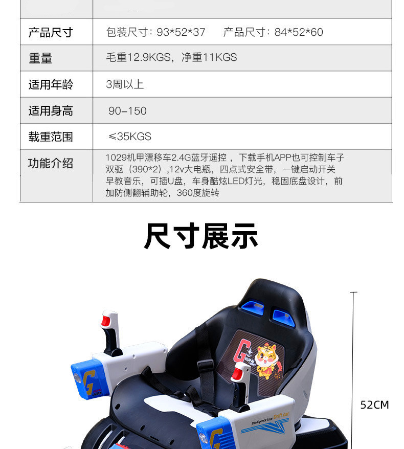 儿童电动漂移车宝宝可坐大人遥控机甲车男女孩四轮充电玩具汽车