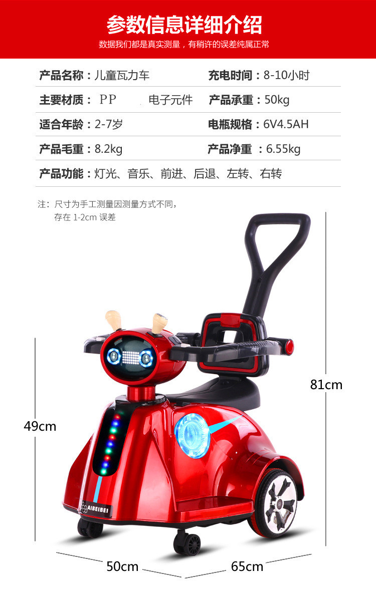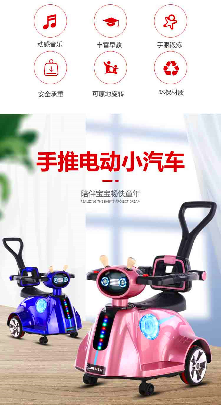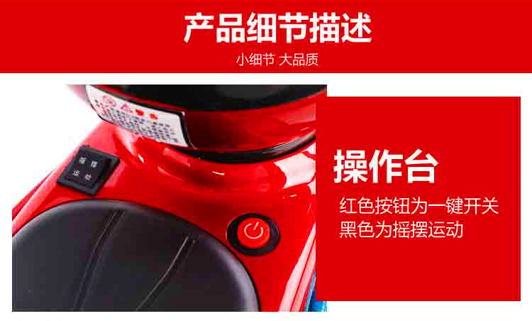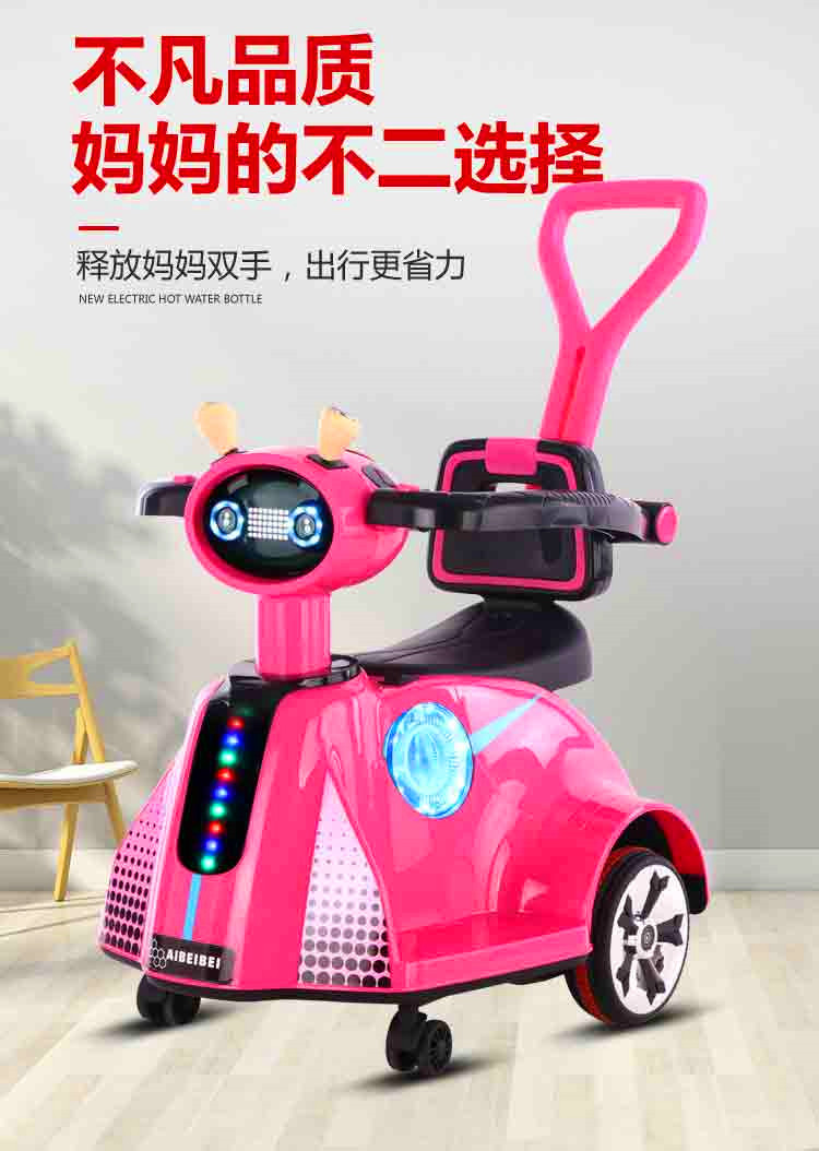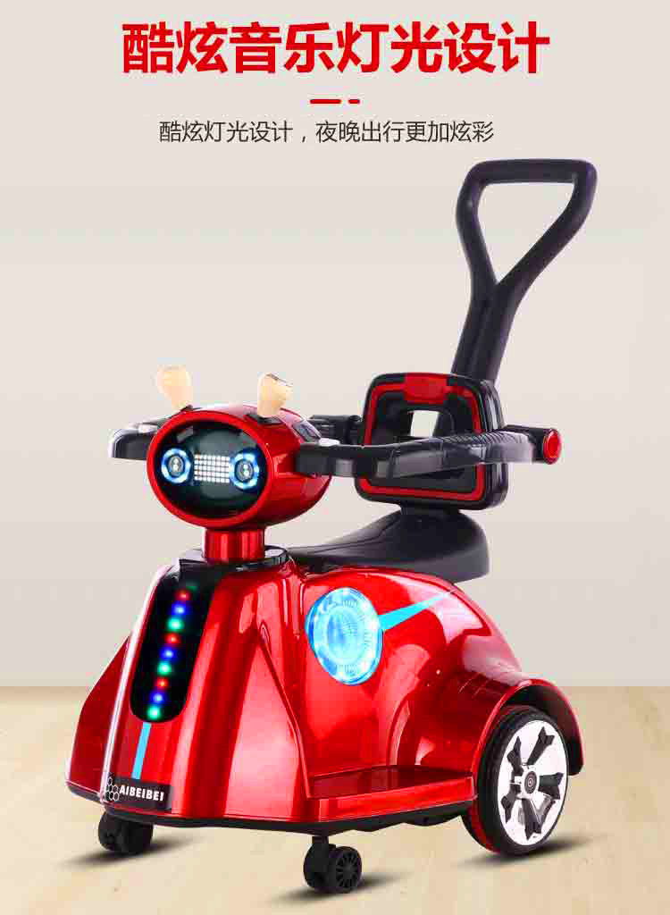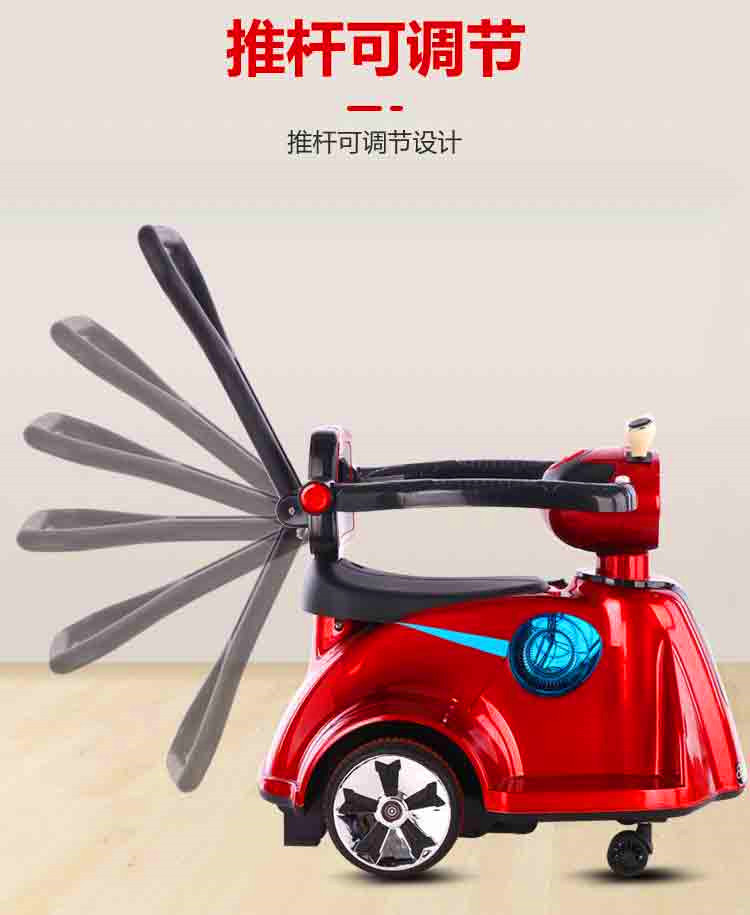 独立摇摆,双驱电,LED炫酷,流水灯设计,360度任意旋转,全方位加宽护栏,自动离合电机,人性化推把,蓝牙播放器,儿歌,早教,USB插口,2.4G蓝牙遥控器,一键启动,缓起动。