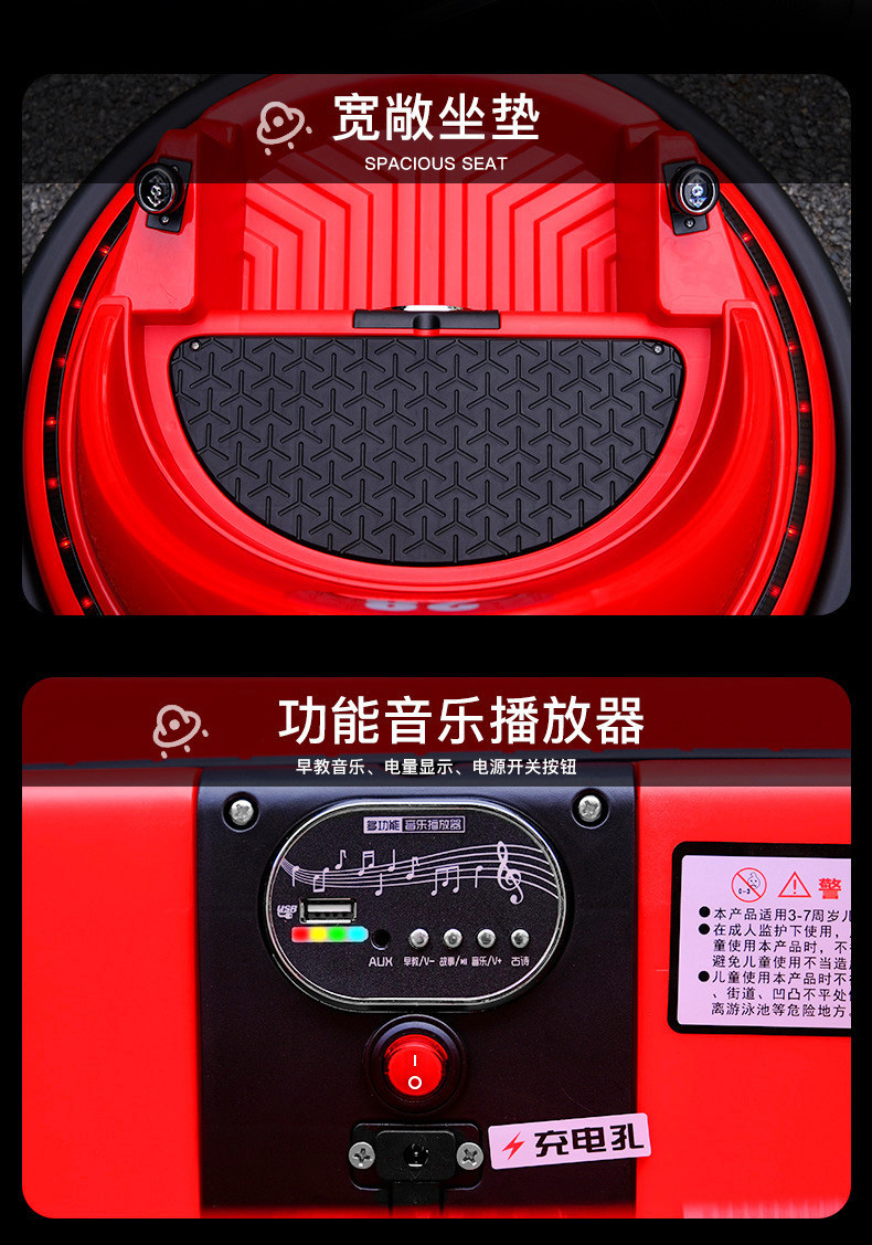 儿童电动广场车儿童电汽车儿童皮座玩具车警车广场车电动 ¥496.00