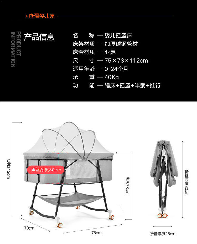 宝宝摇篮床欧式婴儿床折叠多种功能新生儿儿童床可移动便携式婴儿床