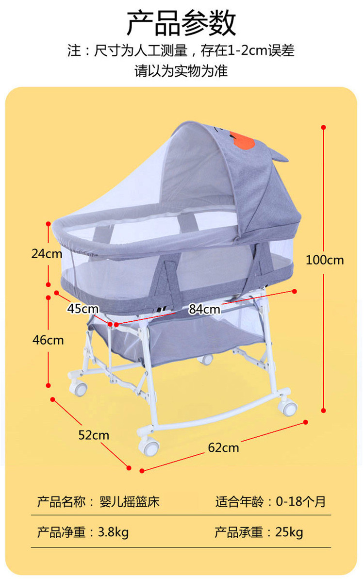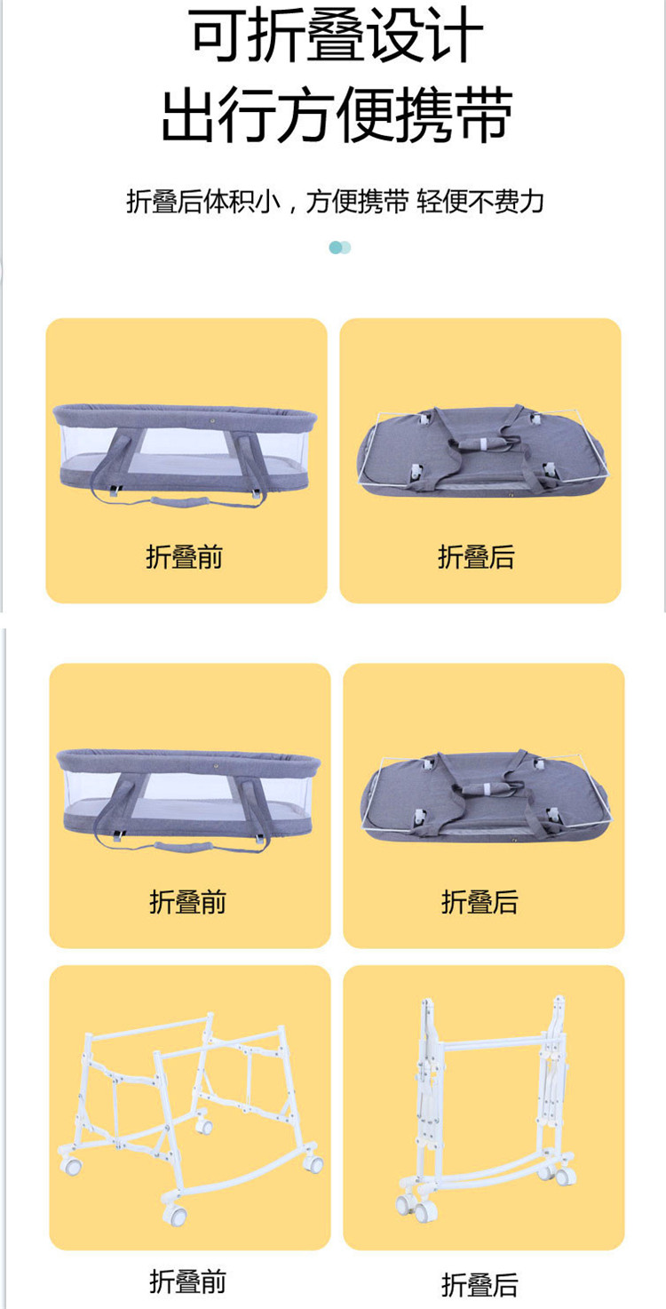 室内宝宝睡篮bb床便携式移动带滚轮新生儿床中床 婴儿床可折叠