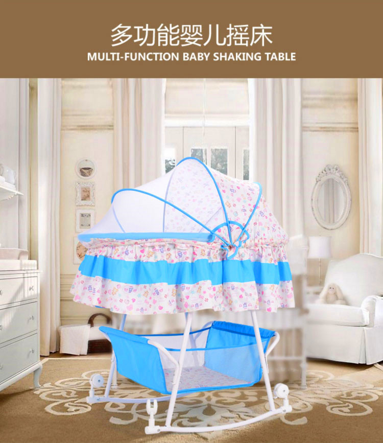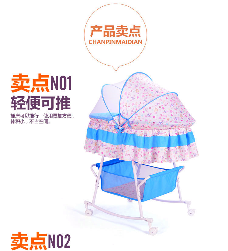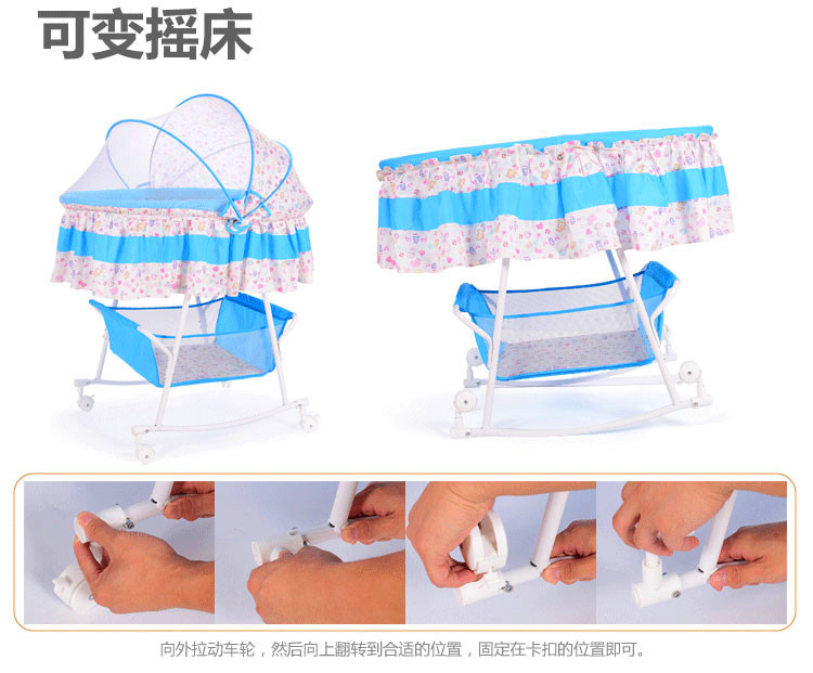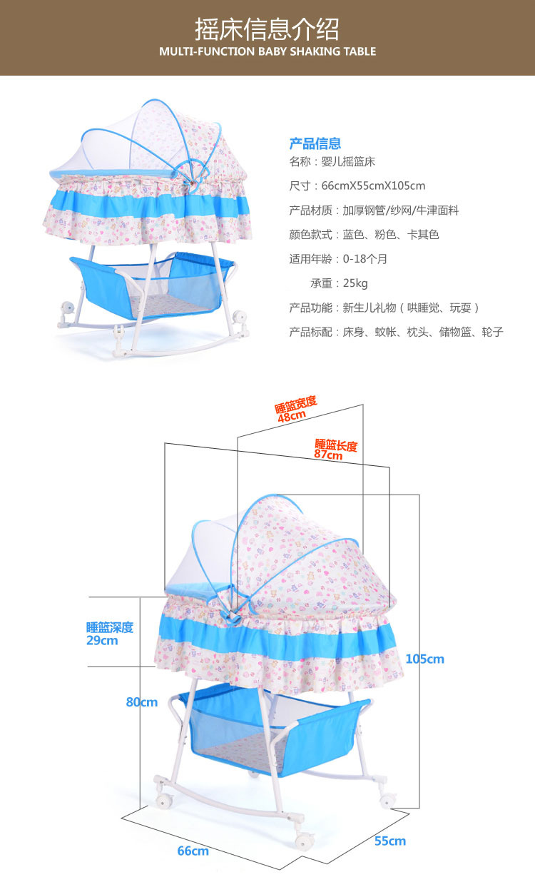 小摇床新生儿床摇摇床带蚊帐多功能安抚bb床带滚轮睡篮婴儿摇篮床