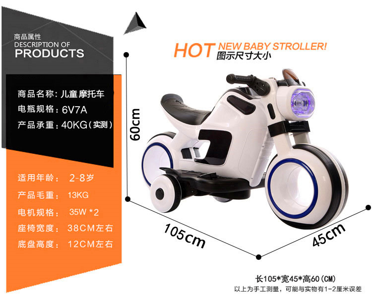 新款儿童电动车摩托车 潮流儿童车辅助轮防侧翻小孩玩具摩托车