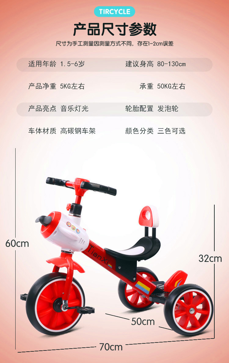 儿童飞机三轮车脚踏车玩具自行车2-7岁男孩女宝宝大号音乐灯光