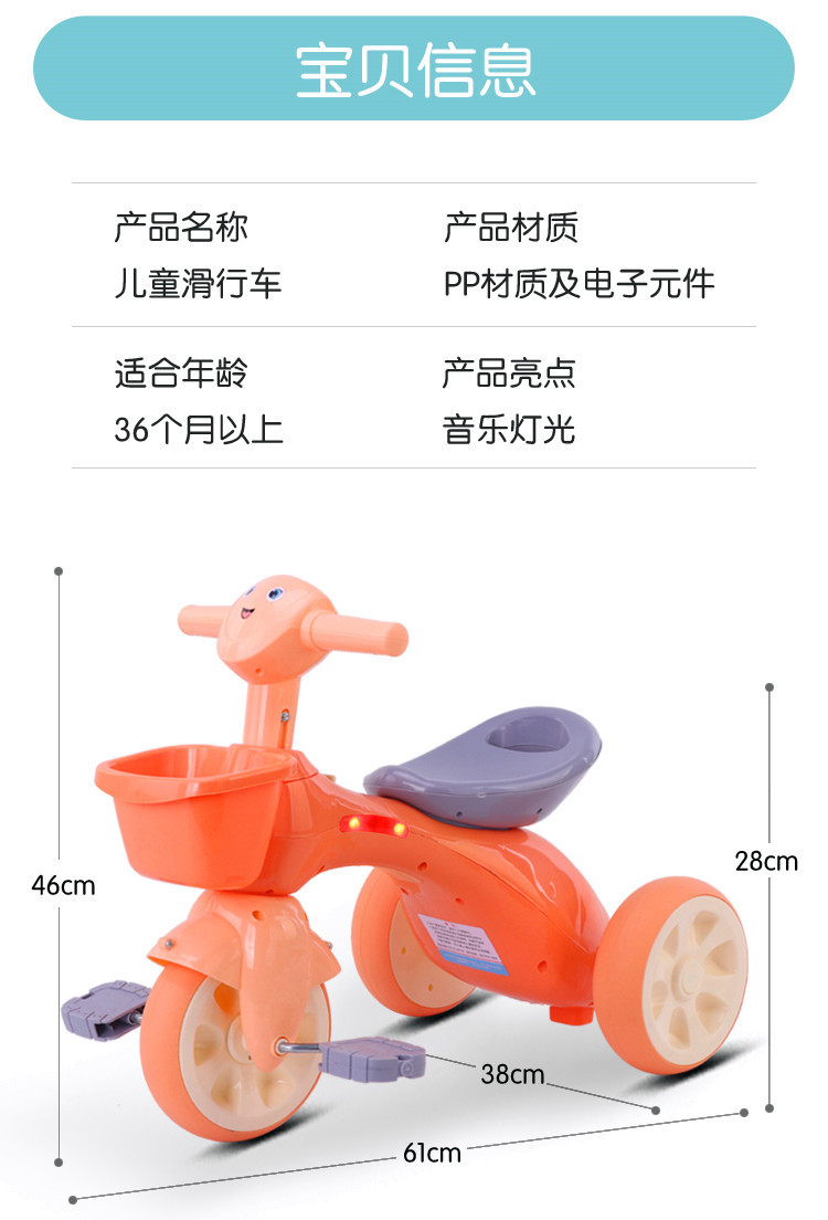 童车脚踏车1-5岁溜溜车灯光音乐男女宝宝幼儿滑行童车儿童三轮车