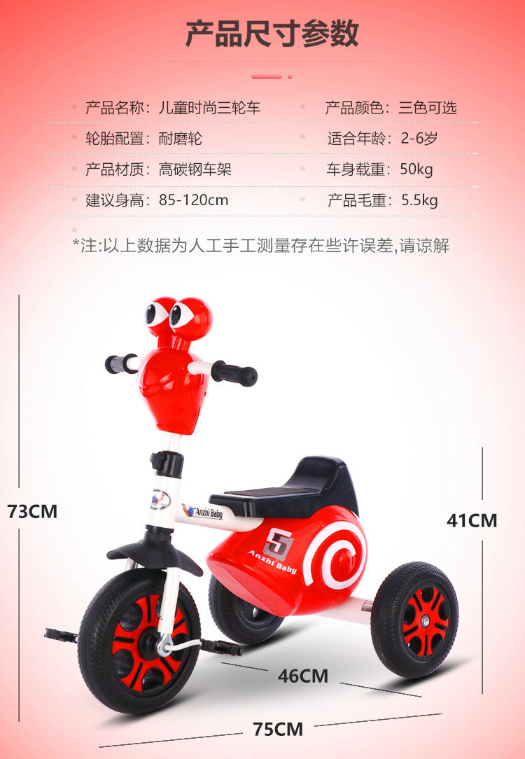 蜗牛带音乐灯光3-8岁宝宝自行车婴幼儿三轮车儿童脚踏车