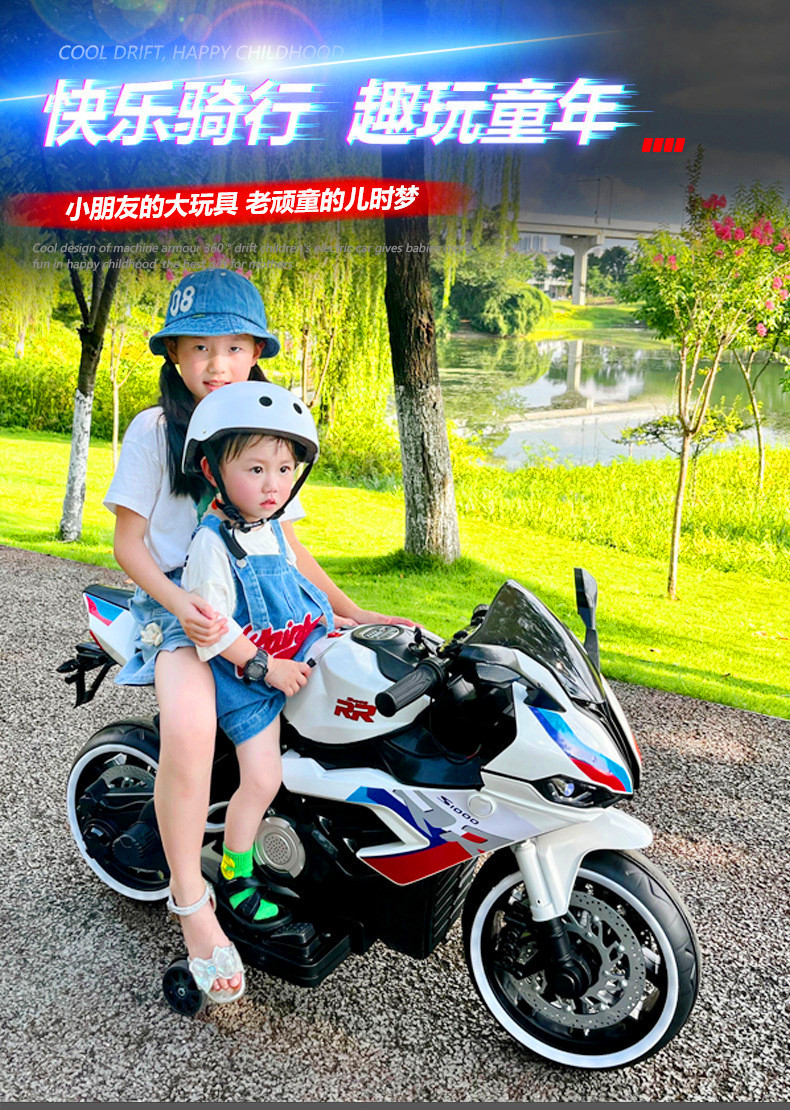 儿童电动摩托车超大号可坐双人男女小孩2-8-12岁宝宝充电瓶玩具车