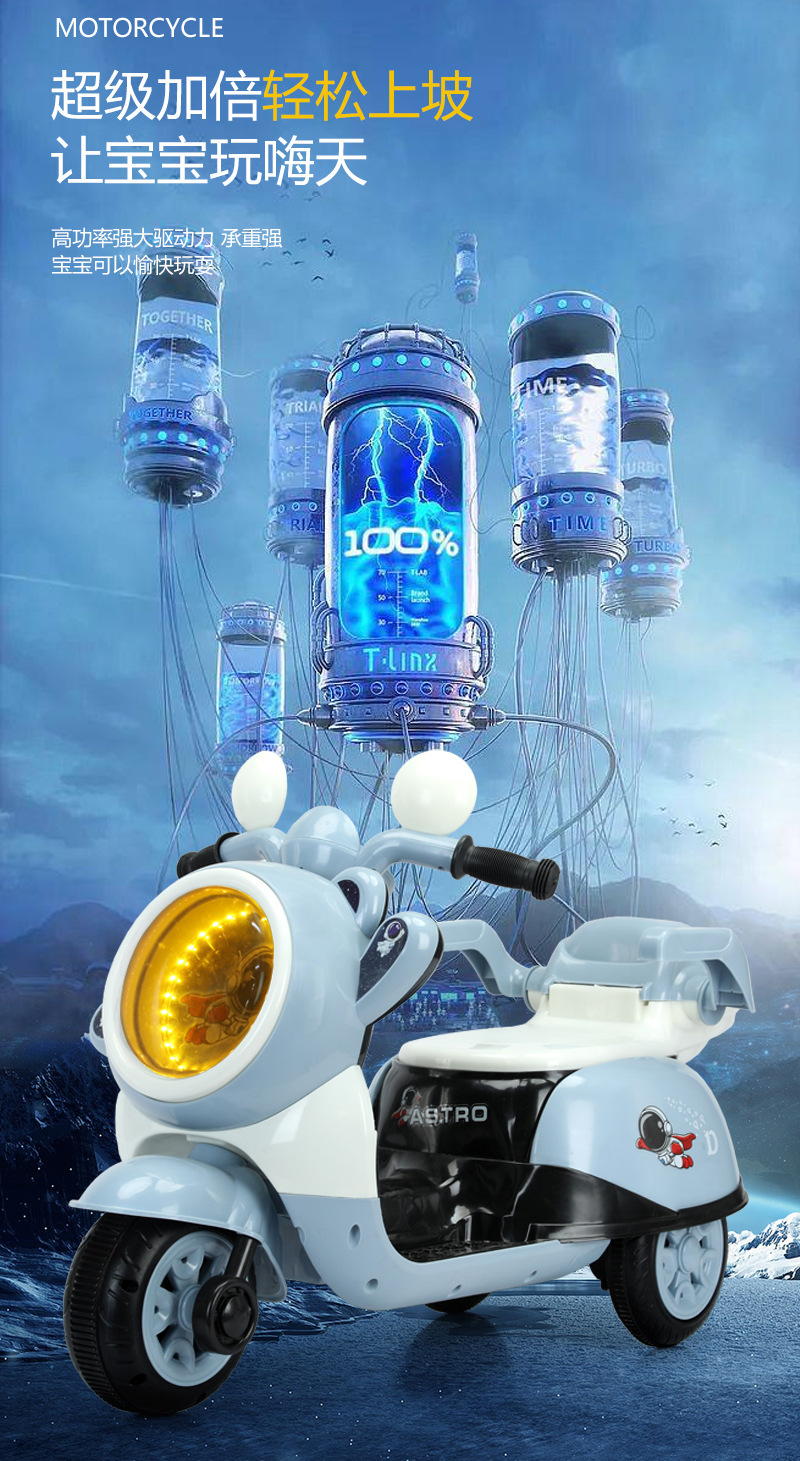 太空人摩托车儿童电动车摩托车宝宝充电遥控电瓶车童车可坐人