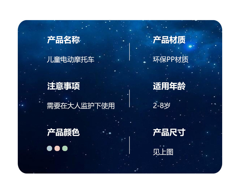 粉色,蓝色,绿色。配置:单电单驱,双电双驱,双电双驱+遥控