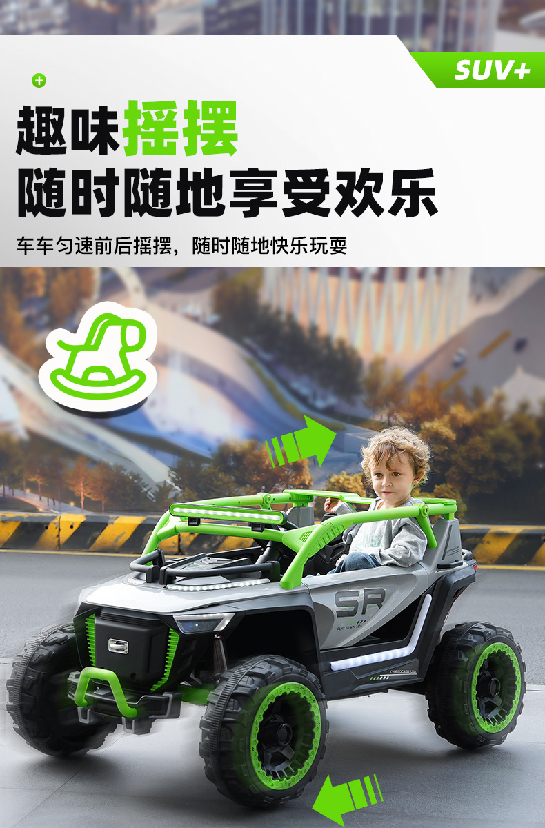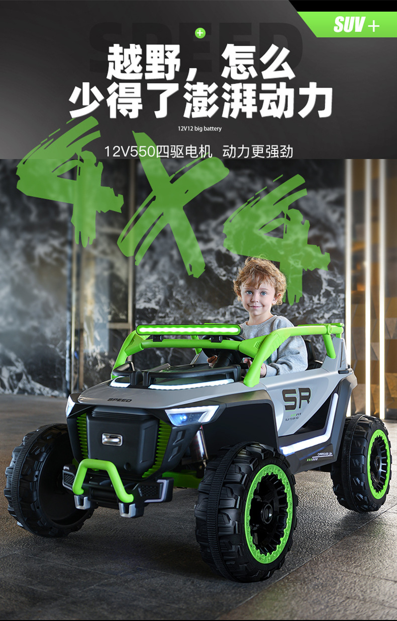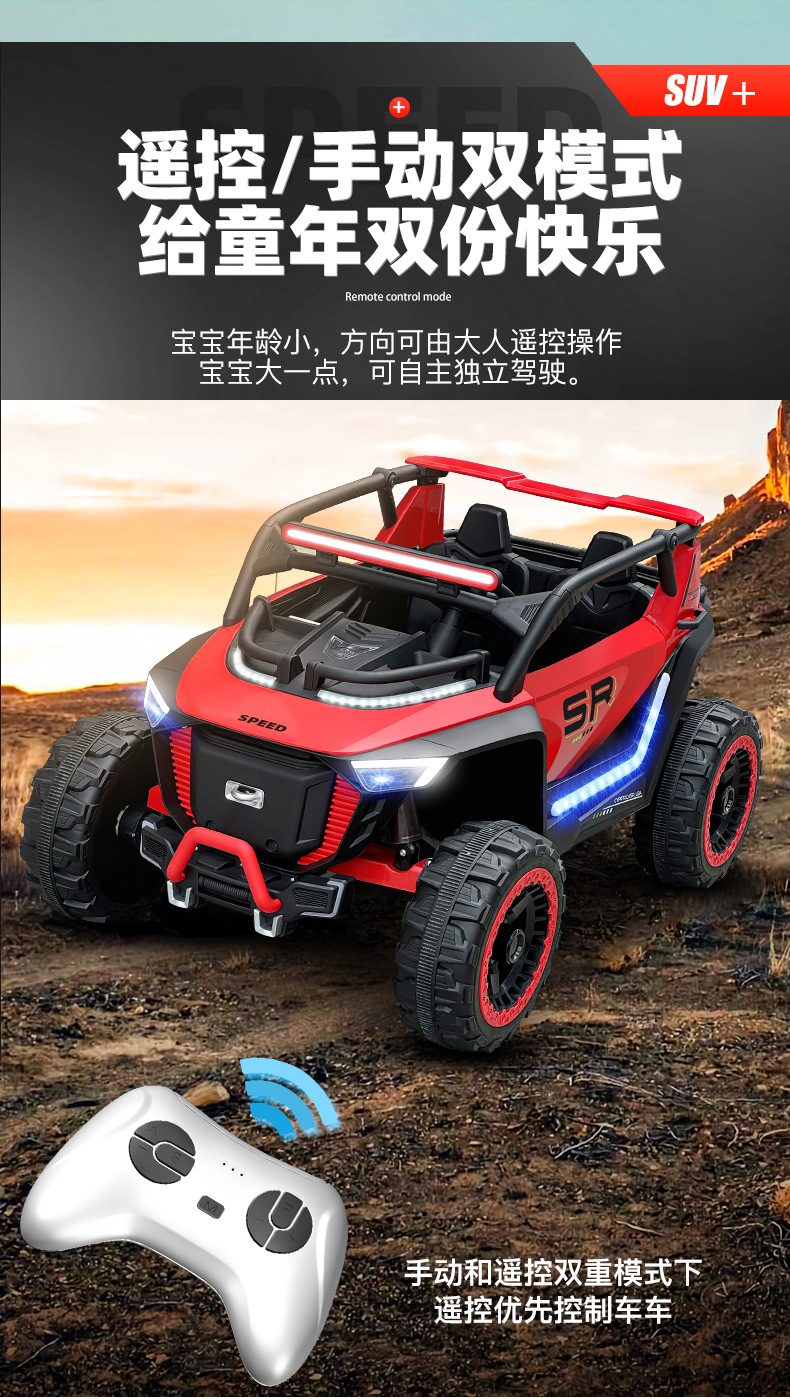加大号儿童电动车四驱动全地形UTV越野车双座可坐两人带摇摆童车