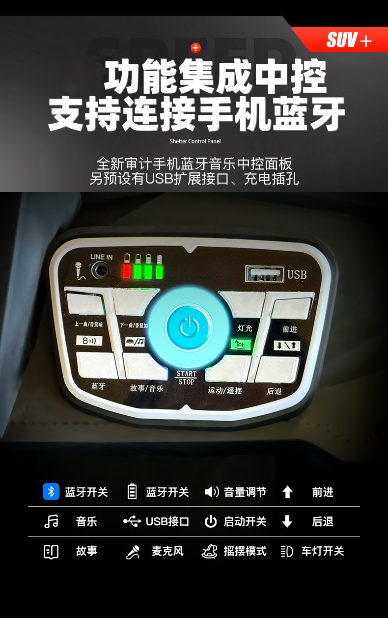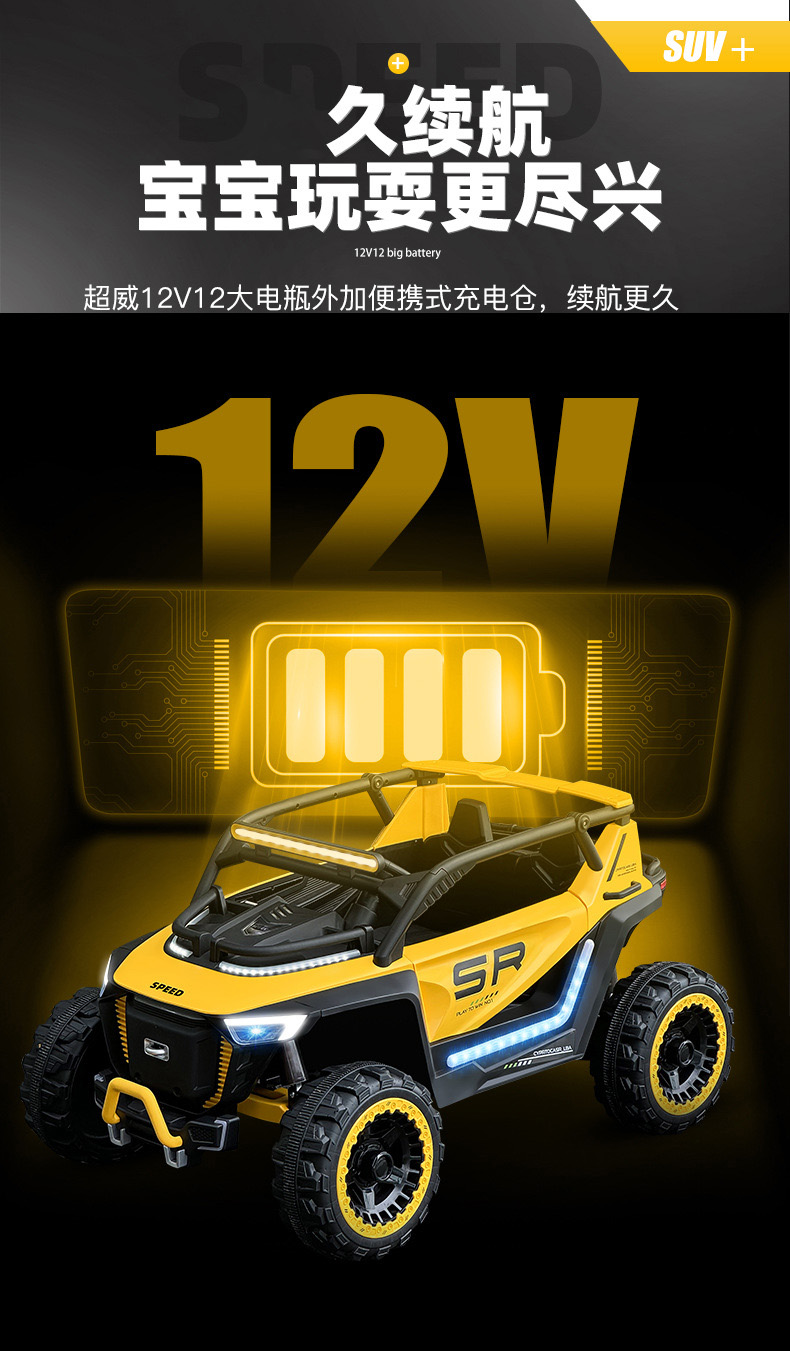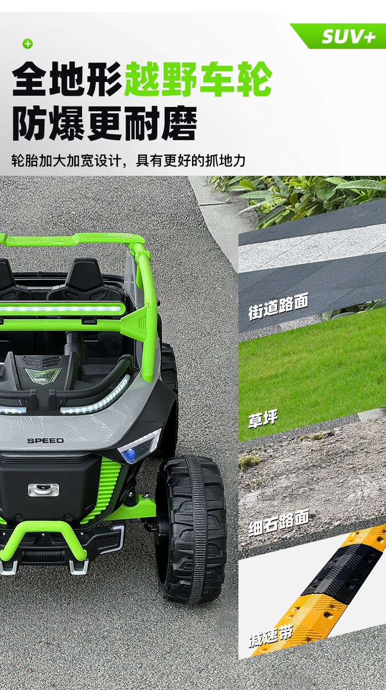 加大号儿童电动车四驱动全地形UTV越野车双座可坐两人带摇摆童车