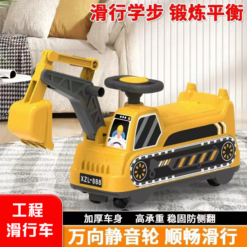 新款单包装儿童挖土机工程车1-3岁滑行车玩具仿真玩具可坐人男孩