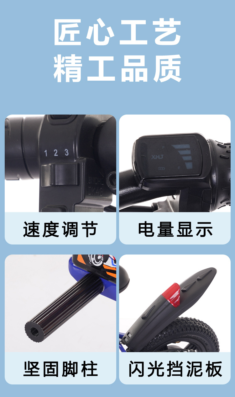 红色/蓝色:标配 100-500W大功率电机+24v4.5电瓶 +手拧油门+碟刹+充气轮,中配+辅轮,高配+24v8锂电