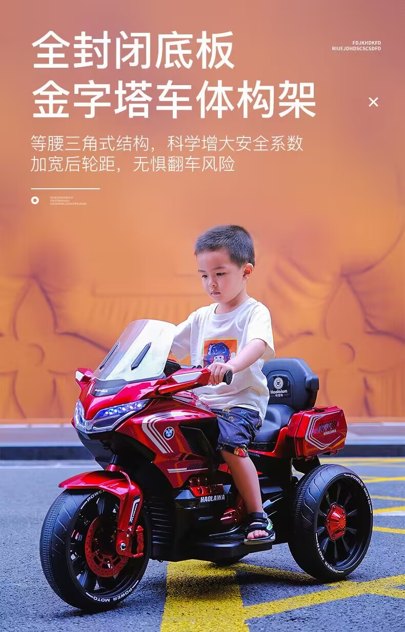 儿童电动摩托车男孩女宝宝三轮车双驱小孩玩具汽车可坐人充电大号