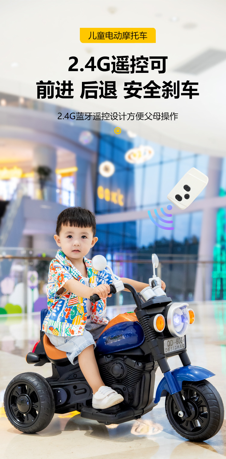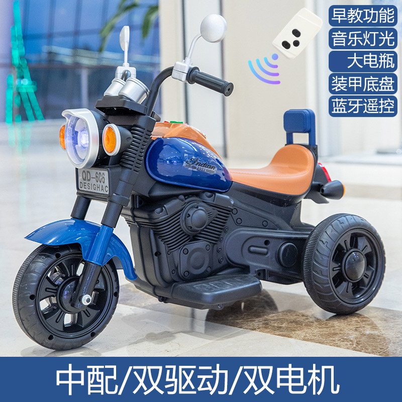 儿童电动摩托车三轮车男女孩宝宝电瓶车小孩可坐人充电遥控玩具车