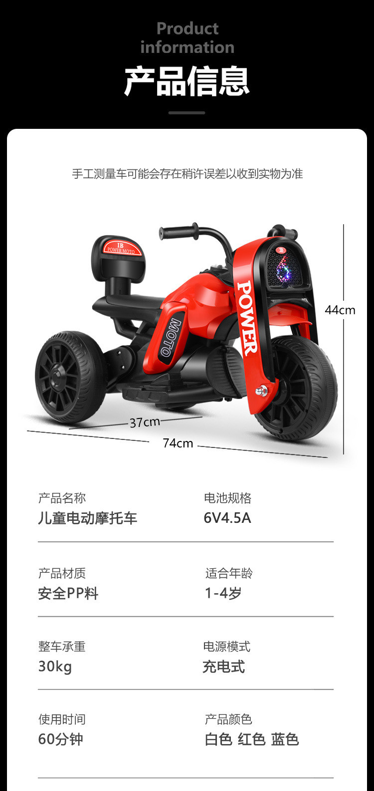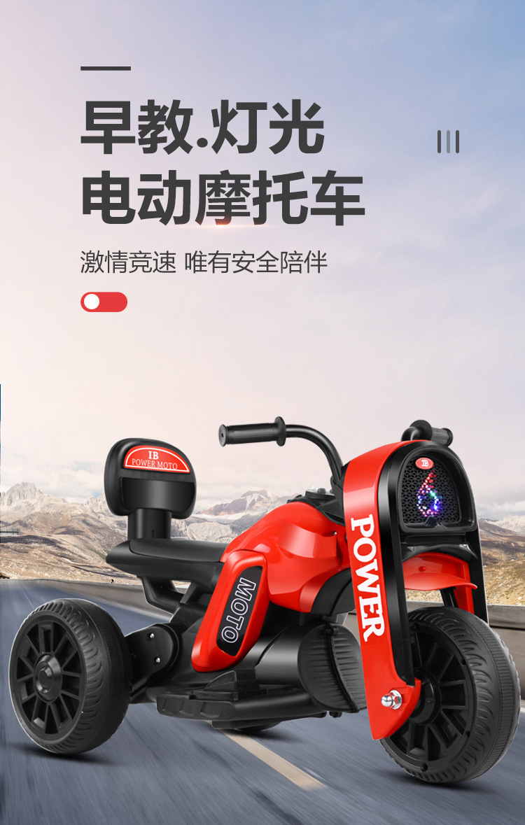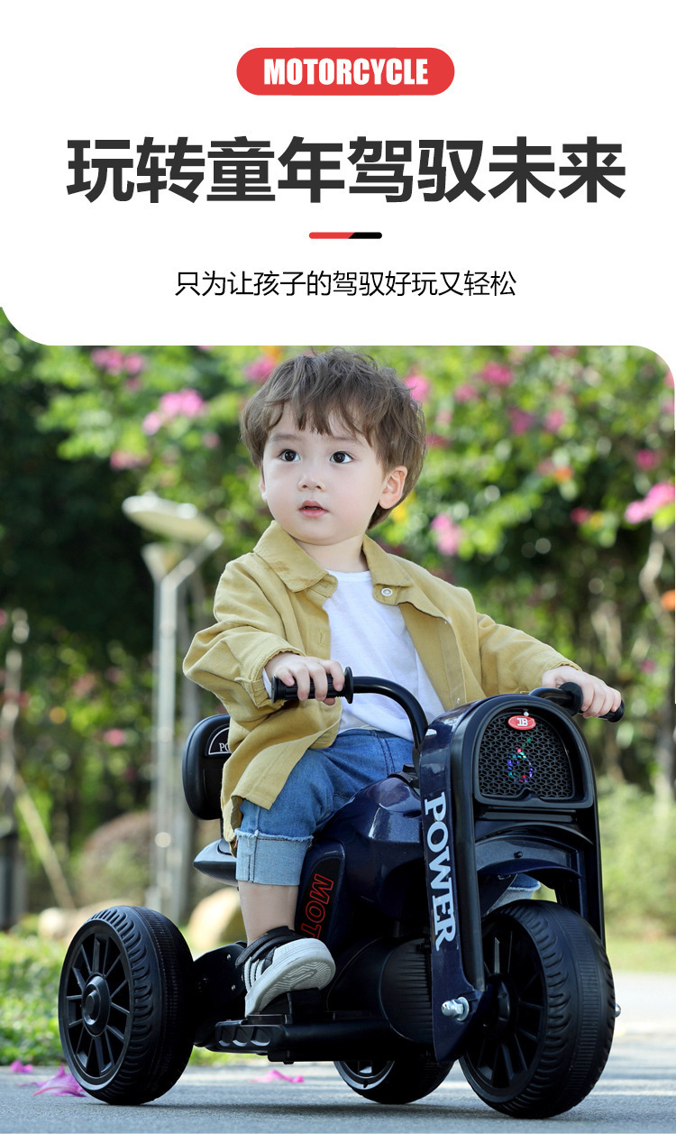 儿童电动摩托车可坐人电动三轮车越野式宝宝电瓶车音乐灯光童车