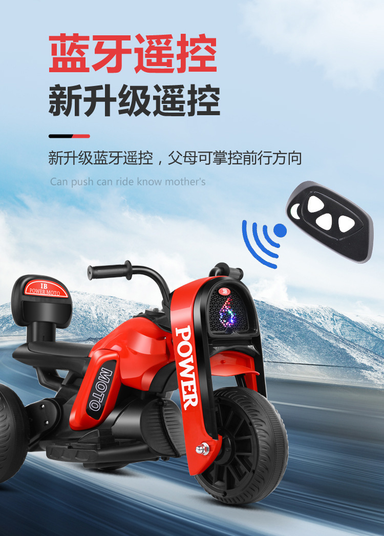 儿童电动摩托车男女孩宝宝电瓶车三轮车小孩可坐人充电遥控玩具车