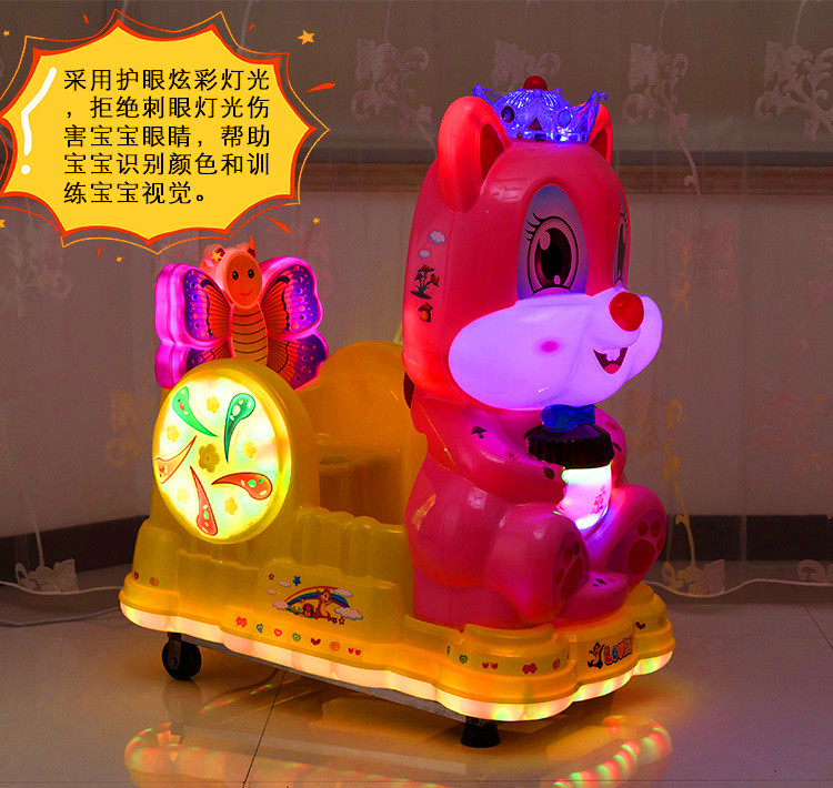 新款儿童电动投币七彩商用MP3摇摇车松鼠摇摆机带音乐摇摇车