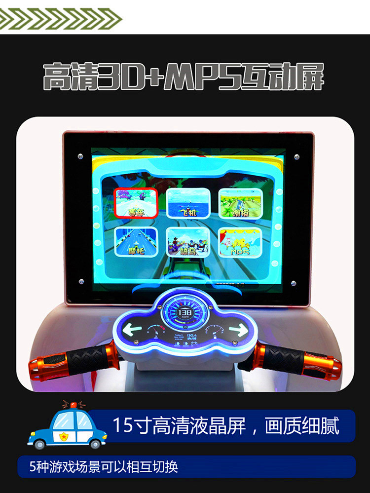 扫码新款儿童电动投币MP5摩托车摇摆机3D互动家用商用场地摇摇车