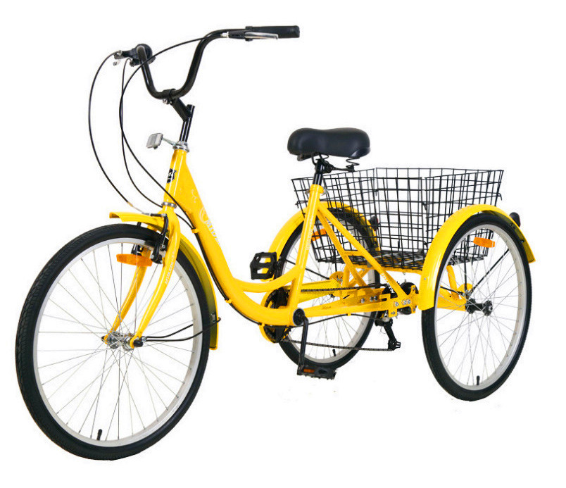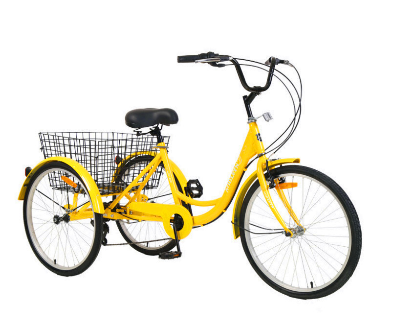 欧式 人力三轮车 成人24寸 脚踏后7速变速老年农用三轮自行车带框